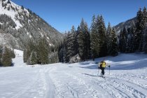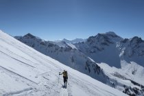 Es hatte ab Parkplatz bis Gipfel schönen neuen Pulver gegeben, unten 5 oben ca. 10cm. Die heutige Sonne brutzelte das Ganze leider heftig, so dass sich der Pulver rasch umwandelte und etwas schwerer wurde. Dennoch das Ausgezeichnet, denn es liess sich trotzdem hervorragend abfahren auf toller Unterlage.