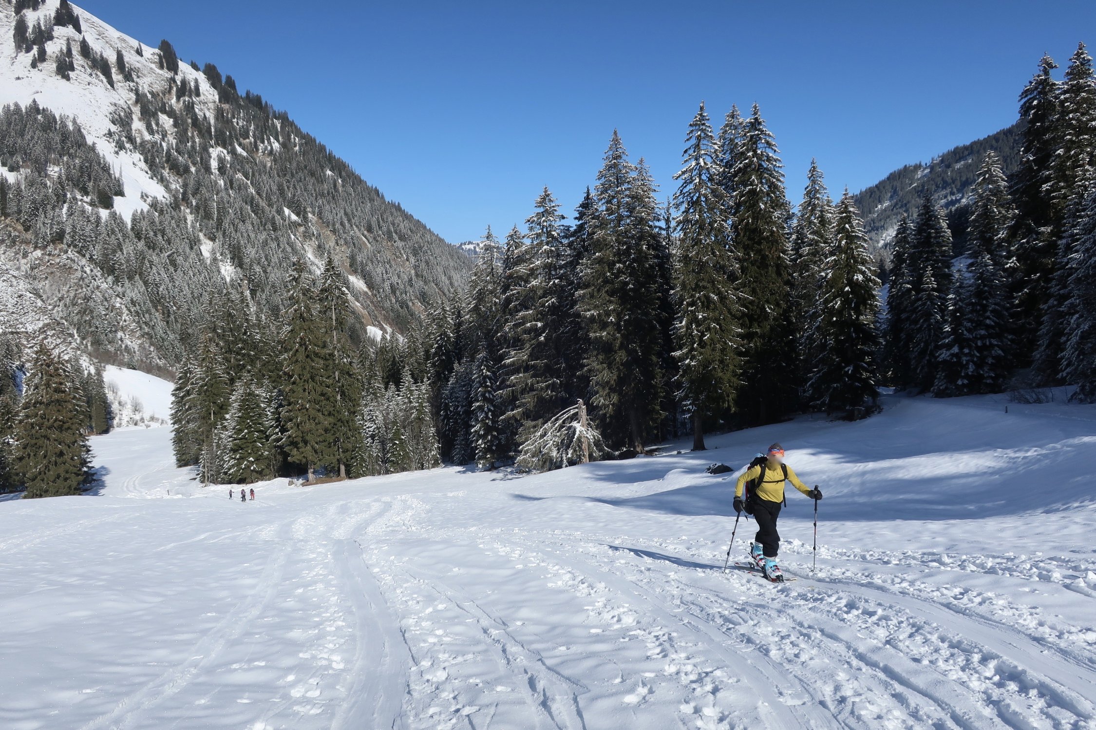 Mit der Wärme wird die Galmschibe ohne Neuschnee oben raus knapp. Es hat aber grundsätzlich noch ziemlich viel Schnee im Chilei bis zur Alphütte auf 2000m.