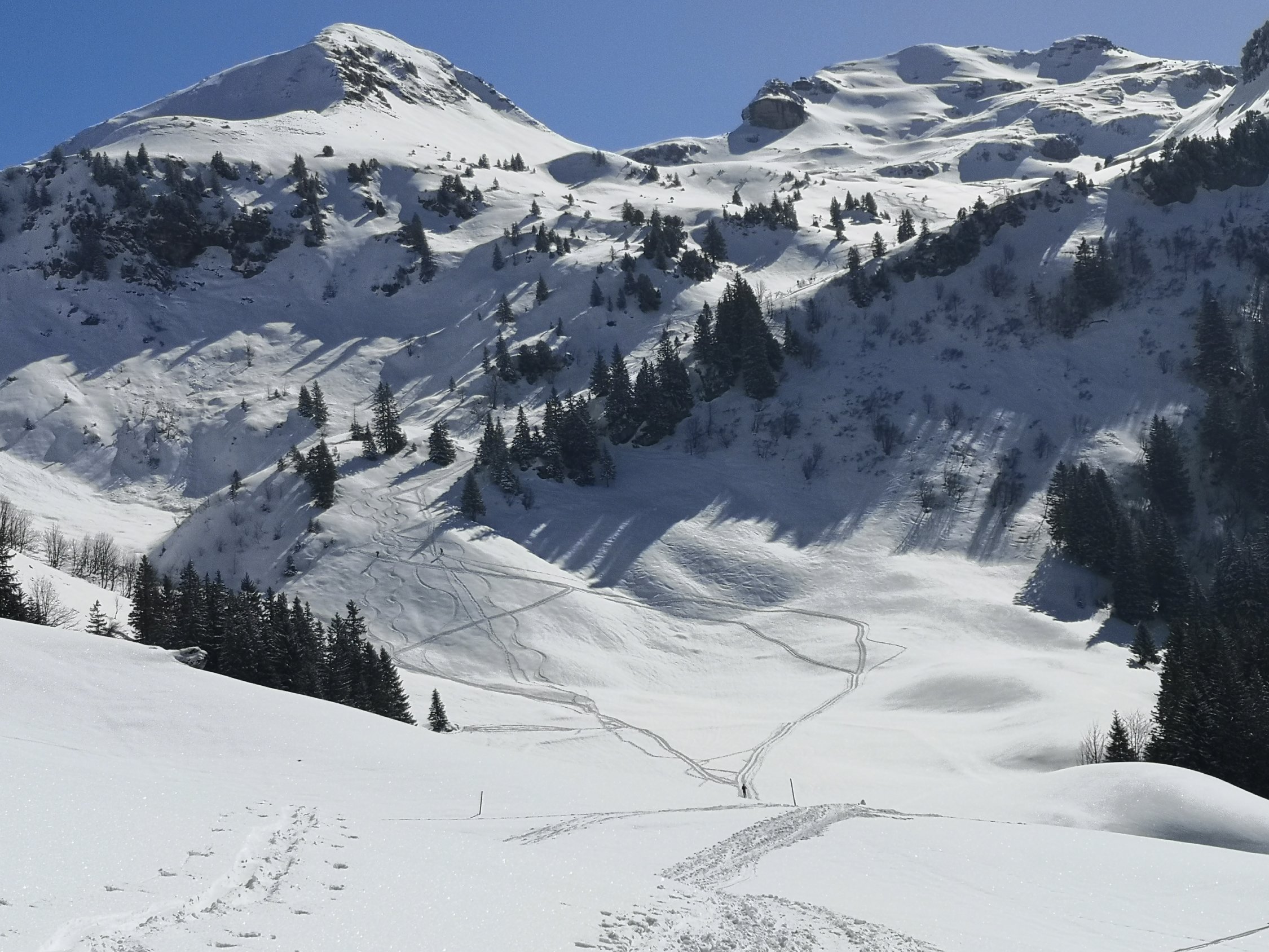 Wirklich tolle Halbtagestour, ab Skilift (in Betrieb CHF 10.00) gut 15-25cm Pulverschnee, kaum verfrachtet