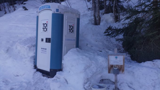 Gestartet um 8:30 beim Parkplatz Hinterberg mit genügend Schnee, gut gekennzeichnet und mit einem toitoi. Mit einem einfach Kässlein um sich am Service zu beteiligen. Super Service der Gemeinde Furna!!!