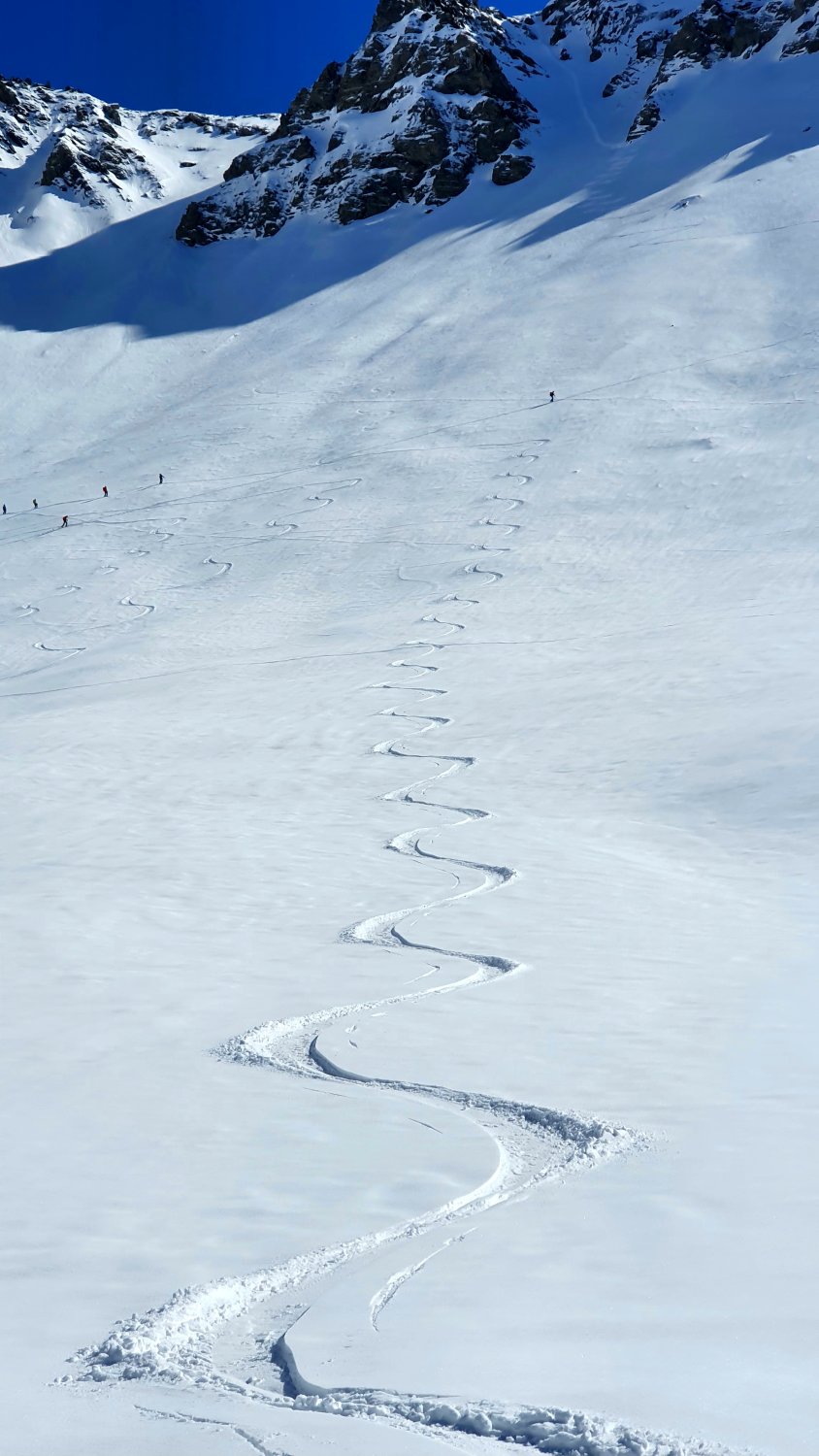 Ebenfalls schöne Abfahrtsspuren im Gsürhang und vom Raufligrat/Türmlihore.