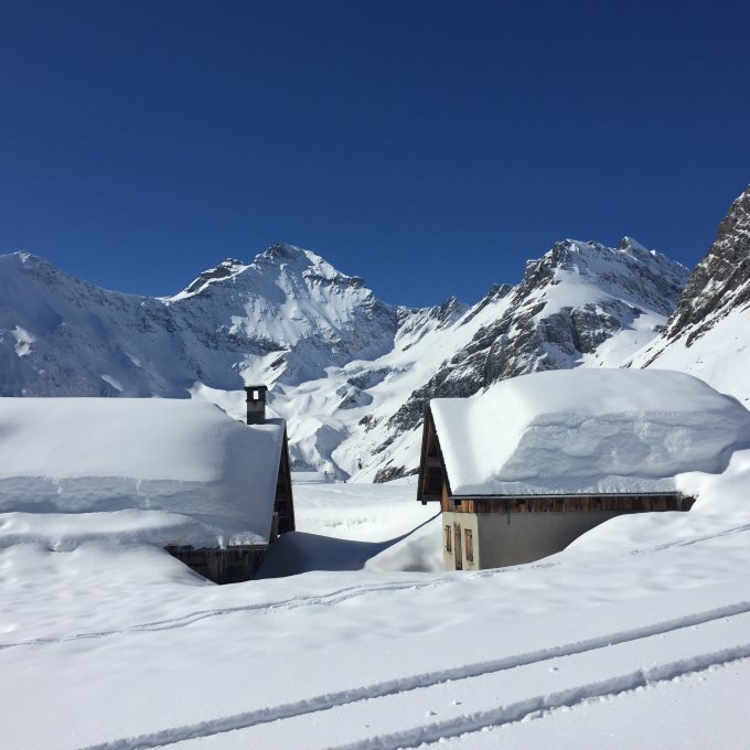 10 - 20 cm Neuschnee. Auf der Abfahrtsvariante Bischofbach in der oberen Hälfte beste Pulverschneeverhältnisse auf tragender Unterlage, dann wird der Deckel etwas brüchig und im unteren Viertel mit Lawinenkegel- und Bachquerung etwas ruppig.