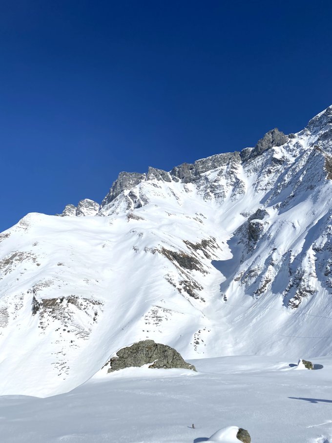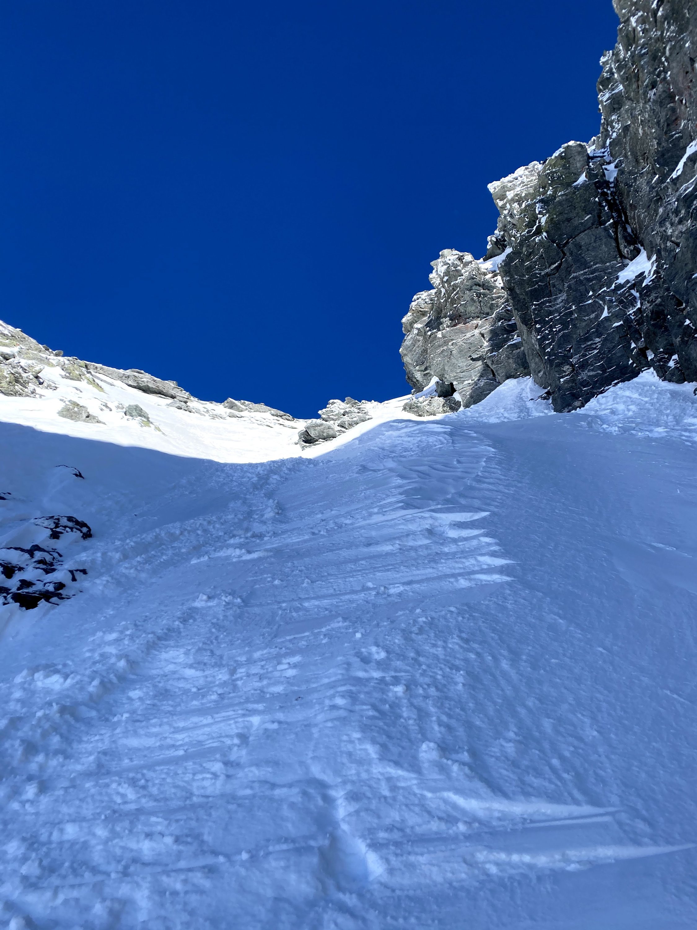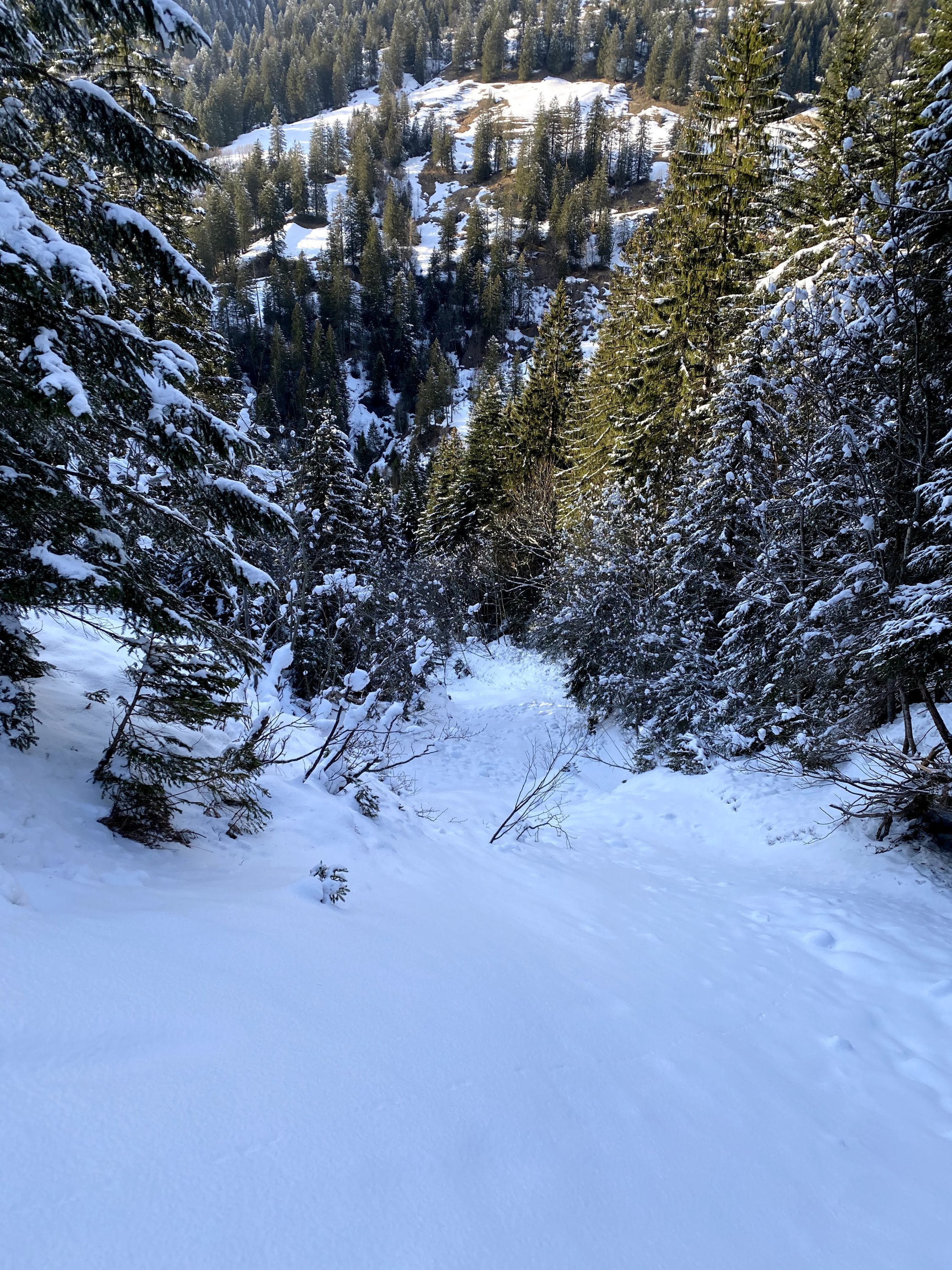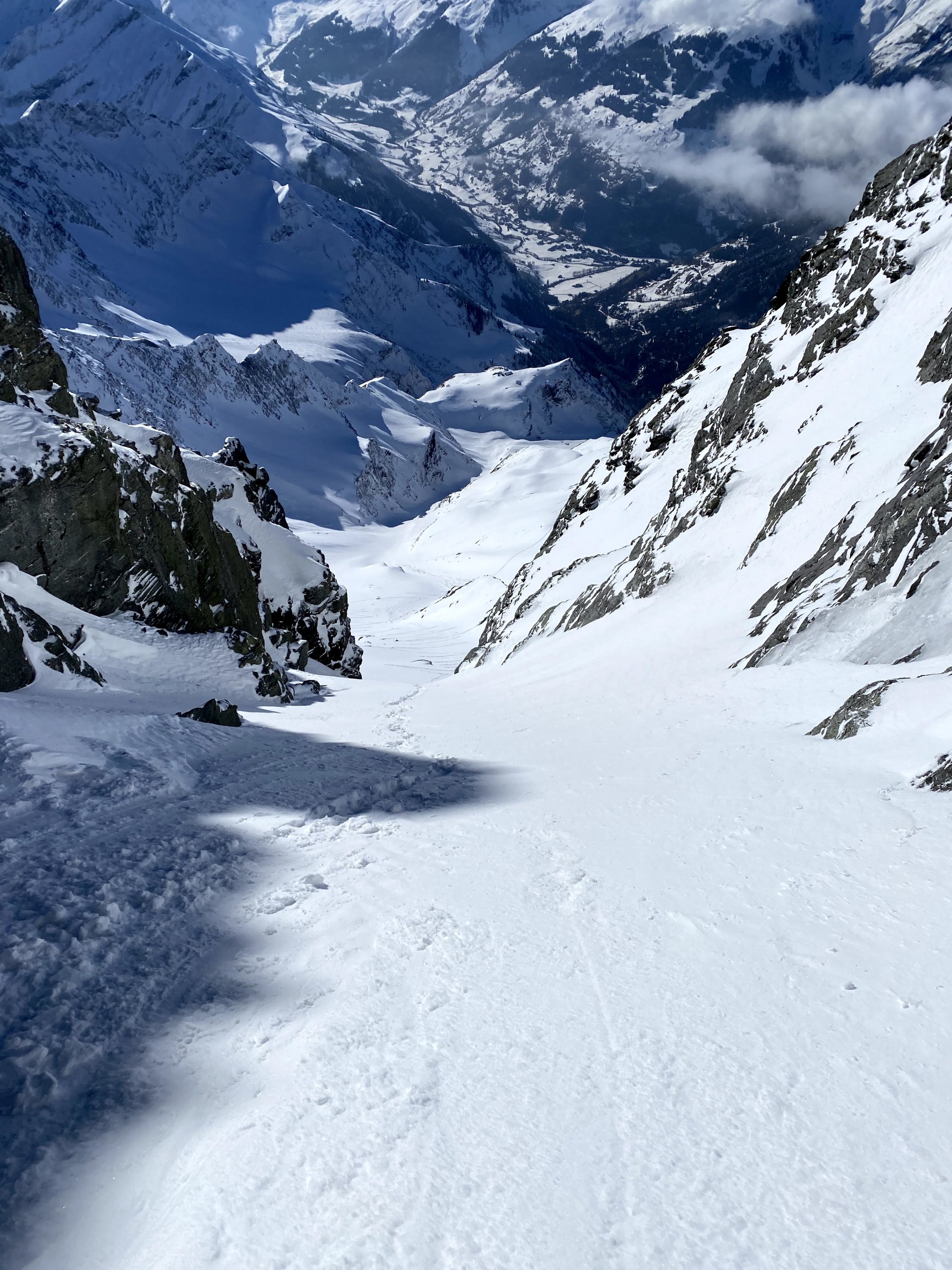 Inspiriert von Herrn Dettlings Blogpost: https://mdettling.blogspot.com/2018/04/piz-sardona-3056m-westcouloir.html starteten wir kurz nach 7 Uhr morgens vom Parkplatz der Tschinglen-Bahn. Es war für uns etwas langsamer (Ski montieren und demontieren) durch den Wald bis kurz nach Stelliwald, wo wir endlich die Skier definitiv montieren konnten. Auf den verschiedenen Unterlagen befanden sich ca. 5-10 cm Pulver von ca. 1400 bis 2700Hm. Im Horen-Couloir war die Unterlage etwas eisig, was es idealer machte, die Skier einfach auf den letzten 50 Metern zu tragen, aber durch Geissegg und die Couloir-Mündung waren die Bedingungen viel besser. Bei tieferem, aber stabilem Schnee (20-30 cm) im Westcouloir waren Steigeisen hilfreich, aber der Eispickel blieb auf dem Rudel - sehr windig auf dem Gipfelplateau, der Gipfel erreichte nach 7,5 Stunden Aufstieg. Es liegt entweder etwas weniger Schnee oder es fallen mehr Steine in die Oberseite des Couloirs als im Blogbeitrag von 2018 beschrieben - daher ist der Einstieg etwas schwierig, aber definitiv nichts, was ein Seil oder einen Gurt erfordert. Perfekte Kurven im Couloir und wirklich bis nach Horen (wir haben es vermieden, die Felle zu benutzen, um nach Horen zu klettern, indem wir hoch geblieben sind). Am Horen Couloir schmolz der Schnee ziemlich, aber immer noch skifahrbar. Wir konnten es nicht vermeiden, nach Stafeli Felle für den Aufstieg zu verwenden, aber danach konnten wir Lawinenreste zur Unter Falzüber-Hütte auf 1330 m absteigen. Problemloses Ski-Tragen danach zum Auto, das wir nach 2,5 Stunden Abstieg erreichten.