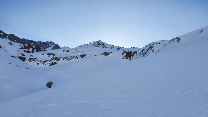 Nach mir sind noch eine 4er und eine 3er Gruppe mehr oder weniger meiner Spur gefolgt. Somit sollte die Aufstiegsspur für Nachzügler leichter zu gehen sein. Bin zu Fuss vom Sattel Pt.3075 auf den Gipfel gestiegen. Abfahrt der Aufstiegsspur folgend auf oben beschriebenen Schneeverhältnisse. Ab und zu auch Pulver angetroffen!