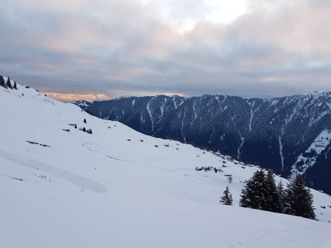 Die Passagen nach Wihel mit den vielen Schneeabrütschen war mühsam u Zeitraubend. Ab Punkt 2033 waren dann bis zum Gipfel beste Bedingungen. Bei der Abfahrt bis ende Schneeböda war sehr gut mit wenig Neuschnee. Dannach bis Tenna teils Sulz u Bruchharsch.