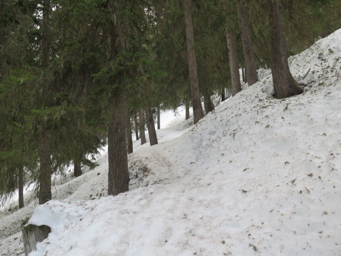 Unten Hart aber griffig im Wald. Ausser an wenigen Stellen Glasig unter Bäumen. Ab unner Flesche zunehmend Neuschnee. Auf der Aufstiegspur hatte es ein paar cm gegeben. Die alten spuren vom Wochenende sind noch sichtbar. Aber es waren nicht so viele. Gute Aufstiegspur bis Gipfel.