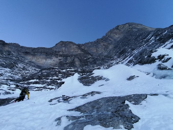 die trockenen und eisfreien Passagen machen es nicht einfacher die Route zu durchsteigen