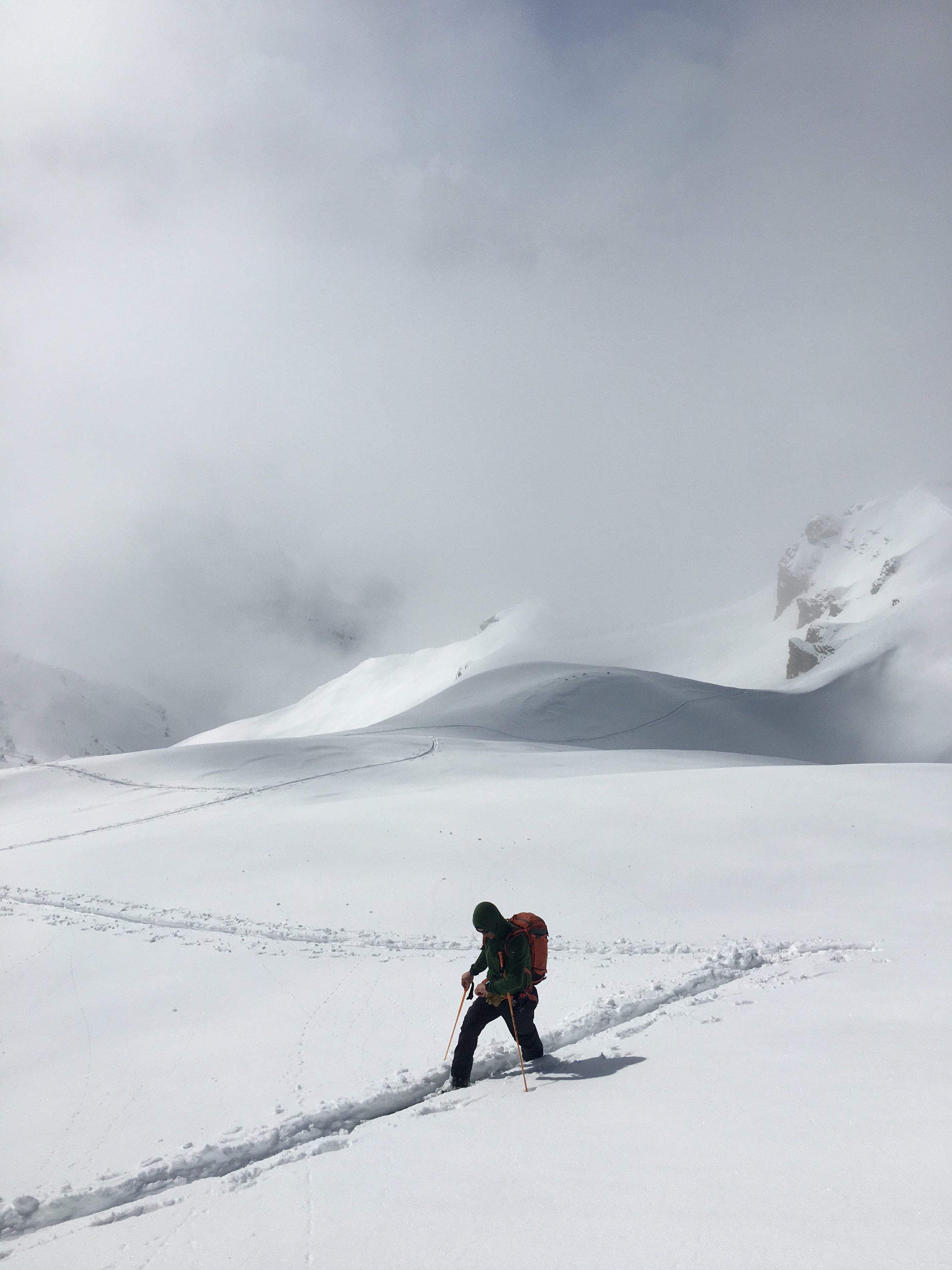 Im Vallon Berard sind schon viele Lawinen runter die normalerweise erst später im Frühling kommen. Es geht aber sehr gut im Aufstieg und auch in der Abfahrt. Es hat gerade noch genug Schnee um wieder nach Le Buet Village abzufahren.