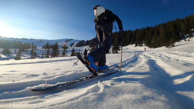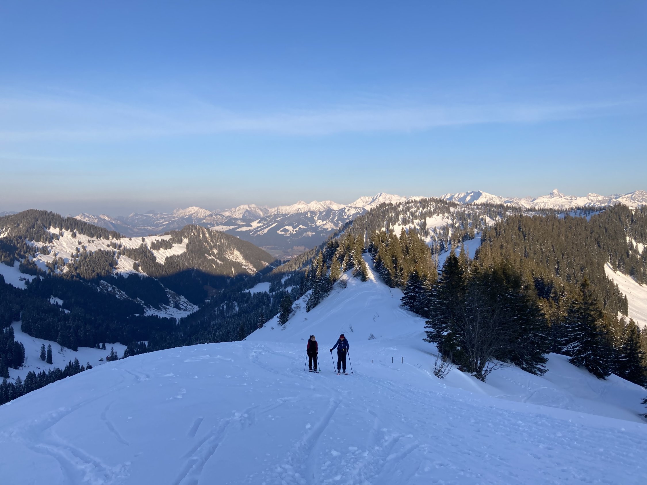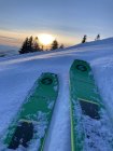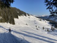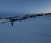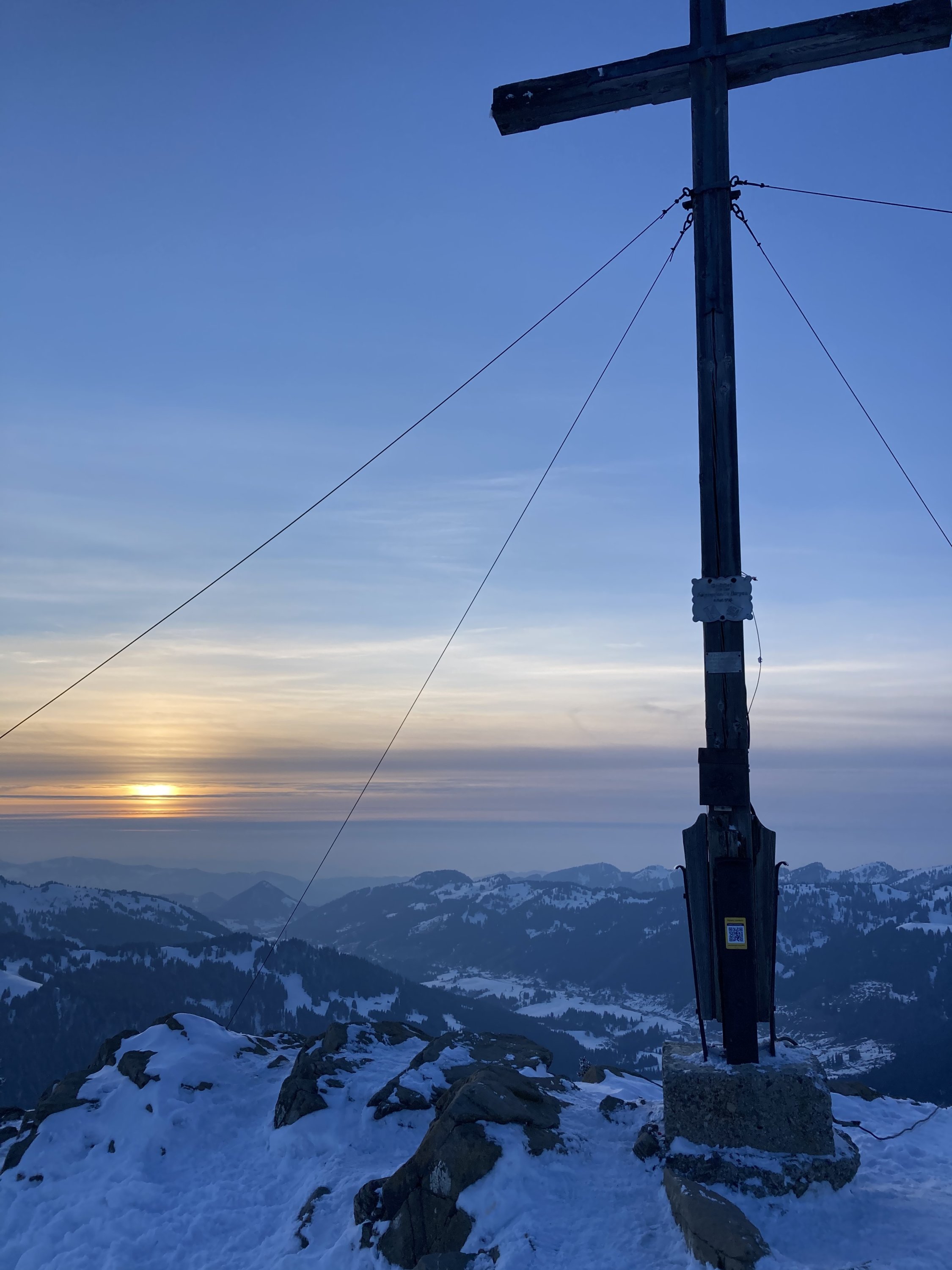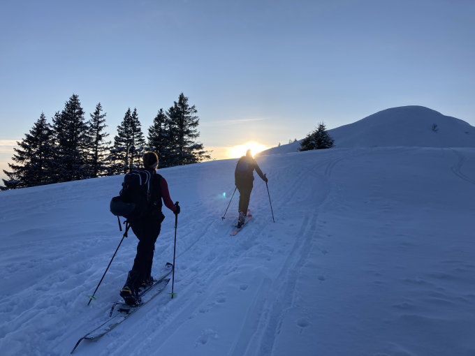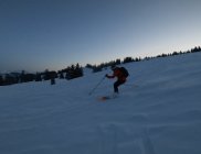 Kleine Feierabendrunde mit schönem Sonnenuntergang. Von gestern auf heute etwa 5-6 cm Neuschnee. Darunter harte Kruste. Trotzdem ganz gut zu fahren.
