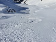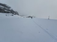 Leichter Presspulver (20cm) zuoberst am Ammertegletscher, bei der Einfahrt beim Frühstücksplatz dann Traumpulver bis zum Schafberg und darunter 10cm Pulver auf etwas ruppiger Unterlage. Aber immer noch gut fahrbar.