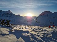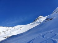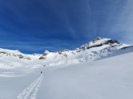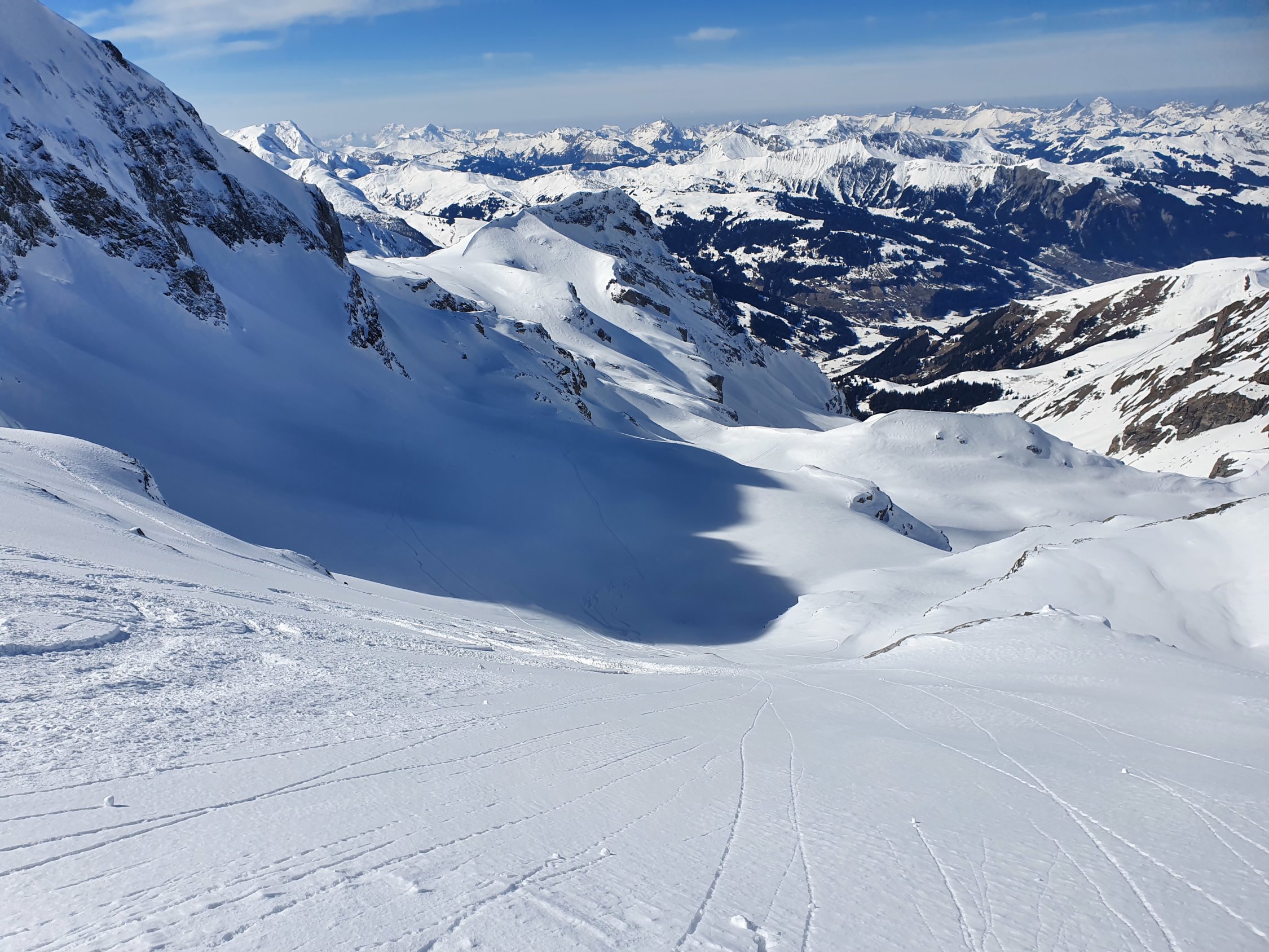 Am Mittwoch begrüsste uns ein wolkenloser Himmel und ca 10cm frischer Pulver, in der neu angelegten Spur konnten wir gemütlich bei angenehmer Temperatur aufsteigen.
