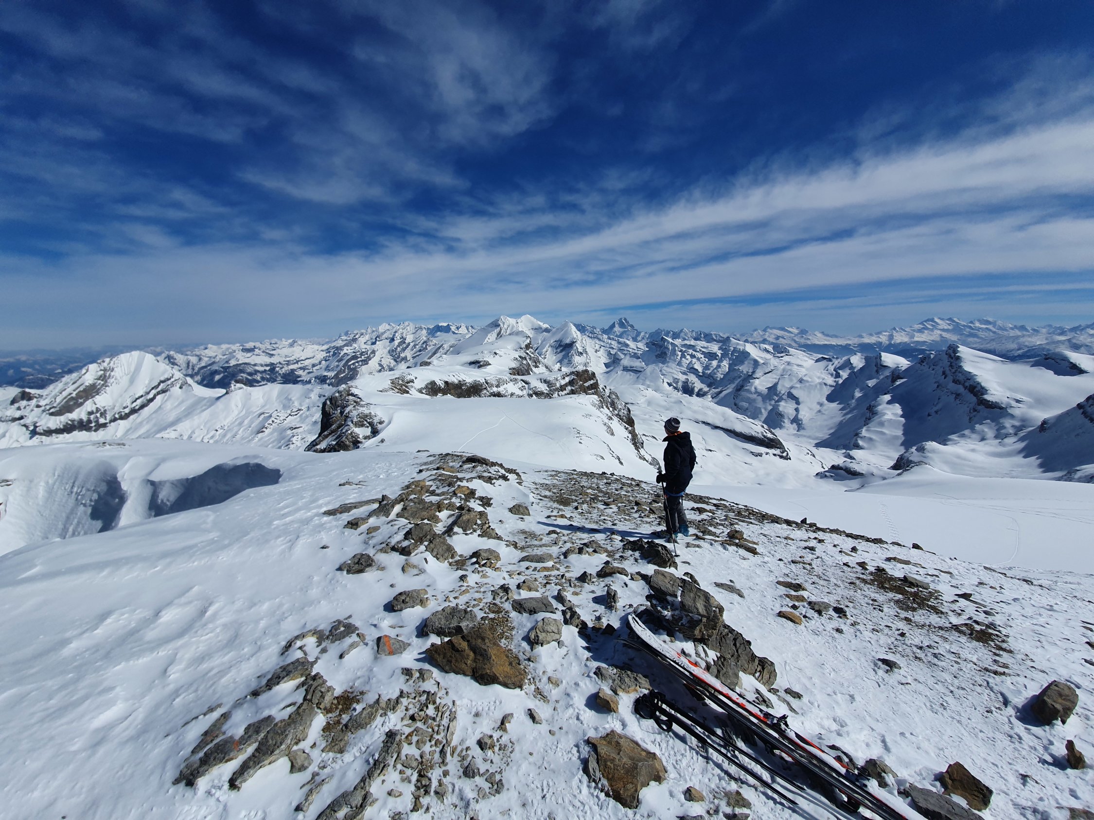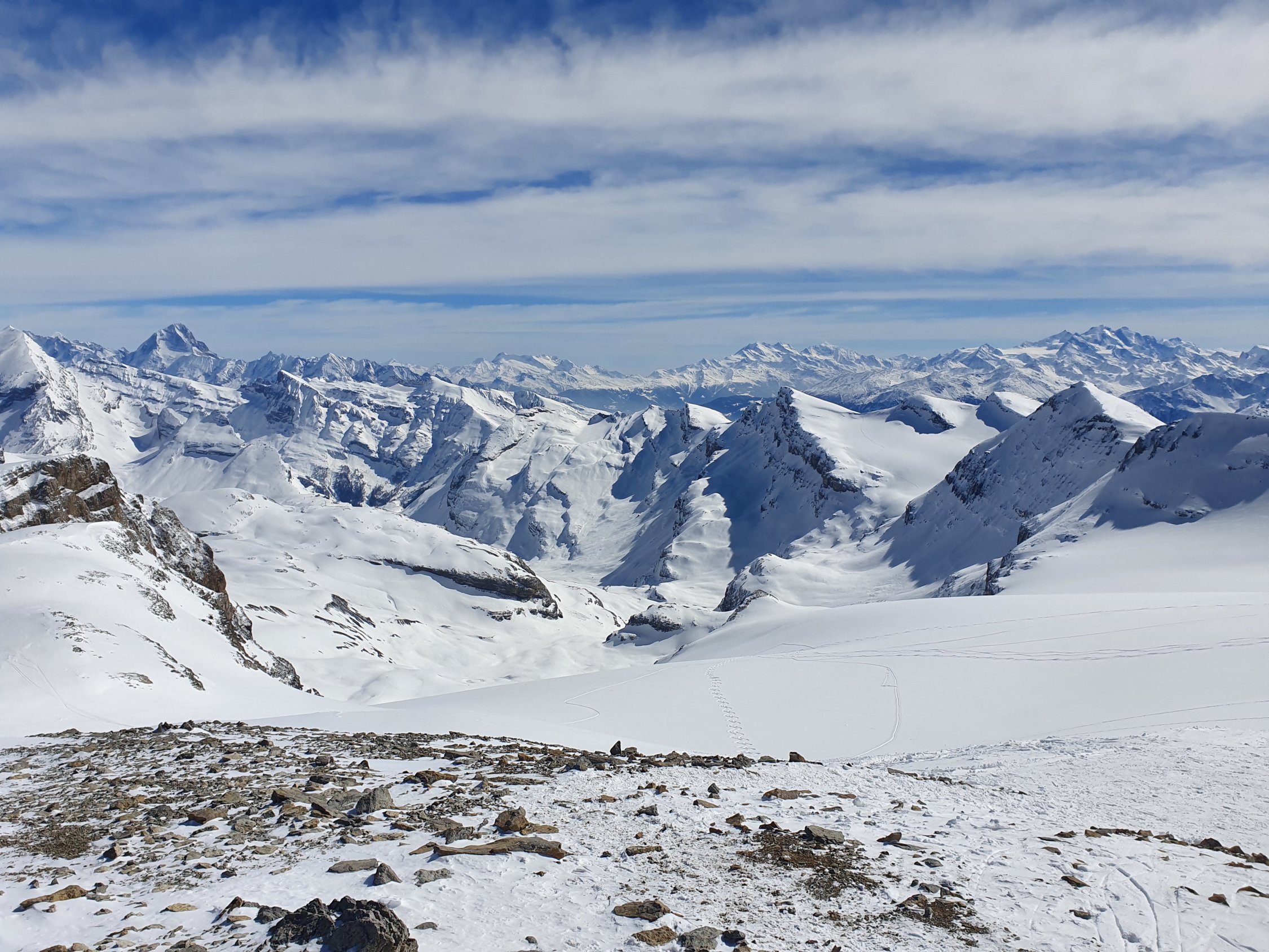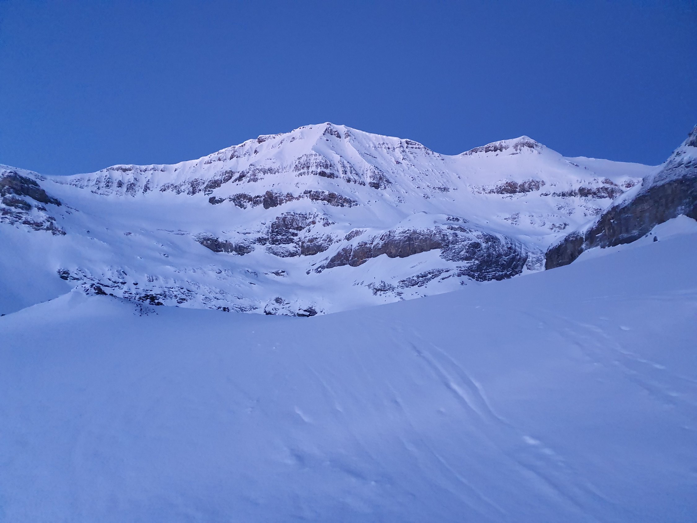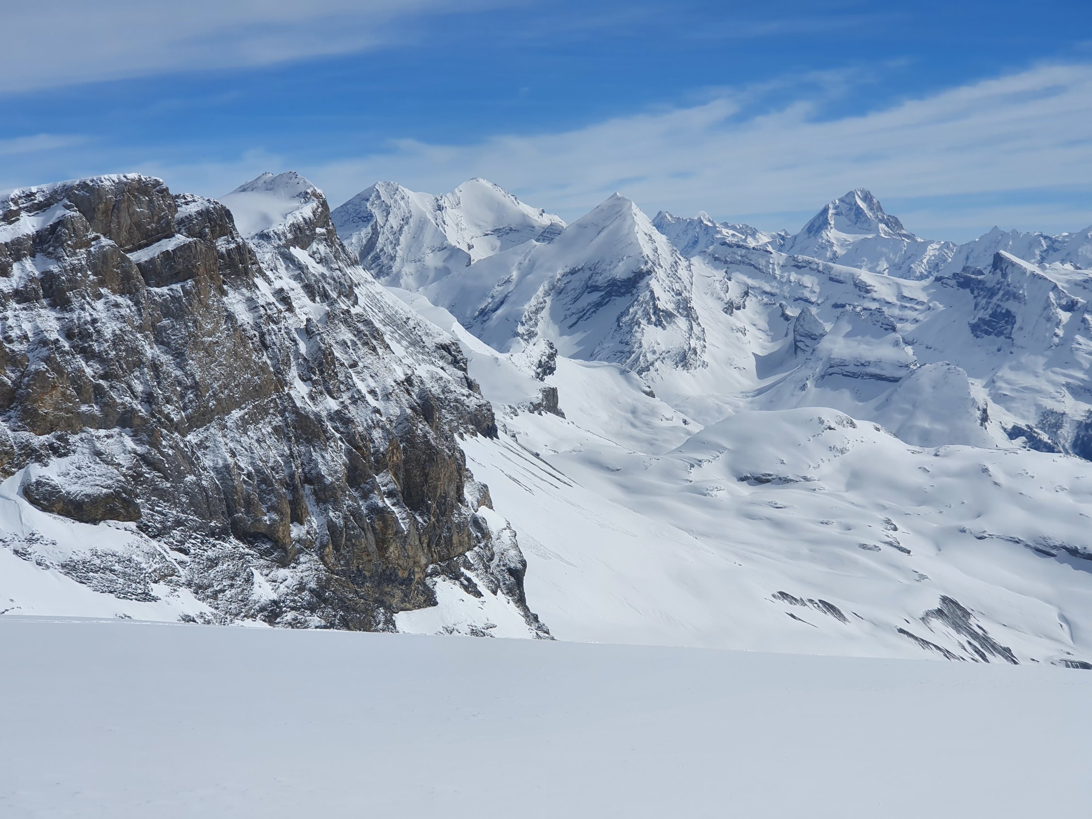Die Abfahrt durch das Ammertetäli ist uns seit Jahren nicht mehr gelungen, entweder fehlte der Schnee oder hingen oberhalb der Ammertenhütte Schneemassen mit lästigen Fischmäulern. Heute war der Teppich mit frischen Pulver ausgelegt, der LWB meldete gering ohne Tagesgang.
