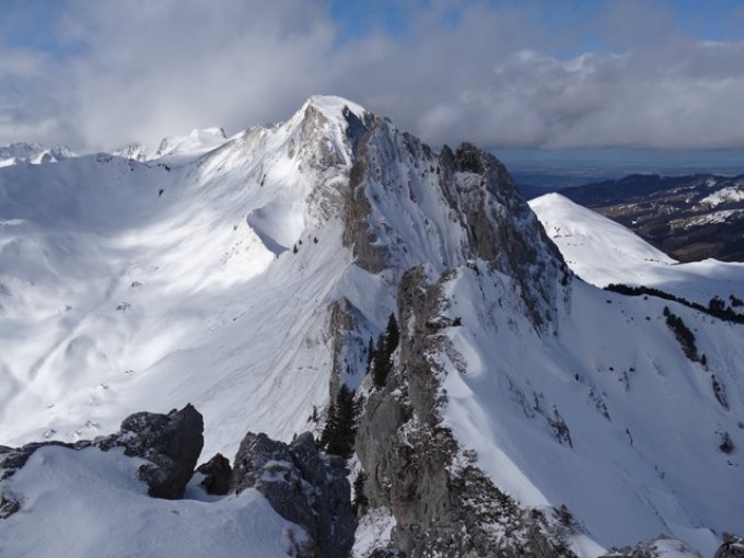 Der Gipfelgrat vom Skigipfel zum Gipfelkreuz ist momentan einfach. Zudem entschärft eine Kette die luftigste Stelle.
