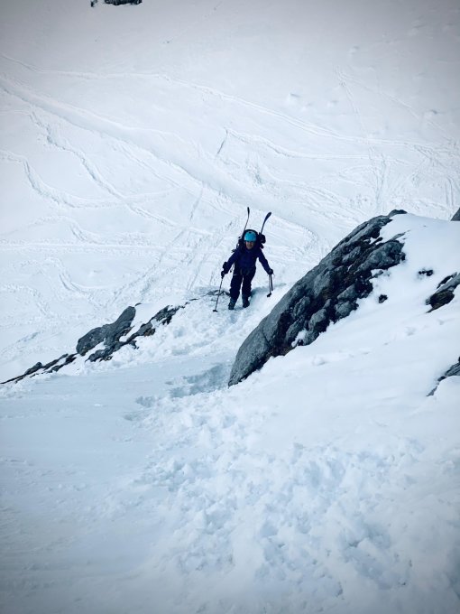 Vom Vortag schon recht verfahren und teilweise mühsame Aufstiegdpur bei neuen pulver auf sehr hartem untergrund. recht rutschig...