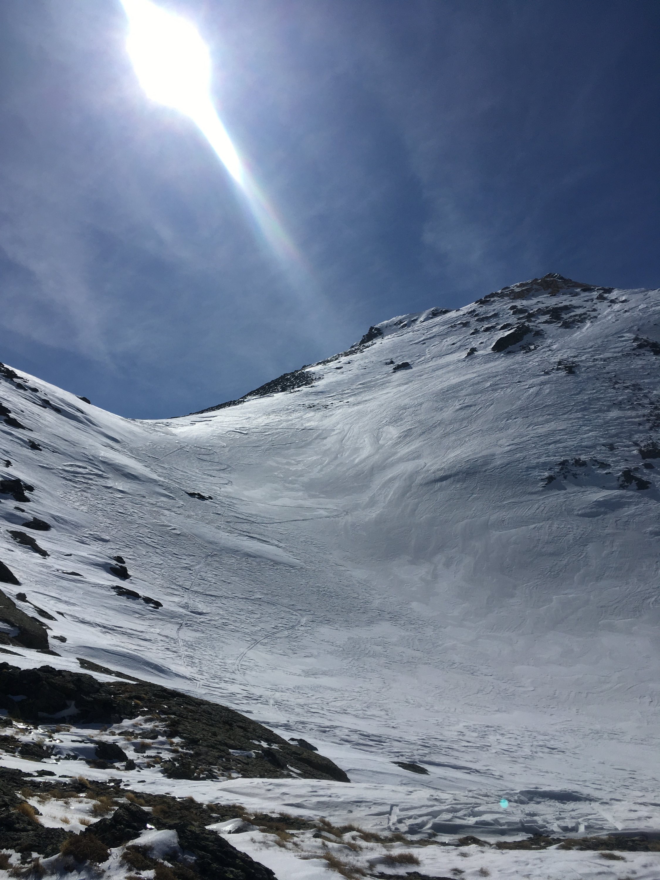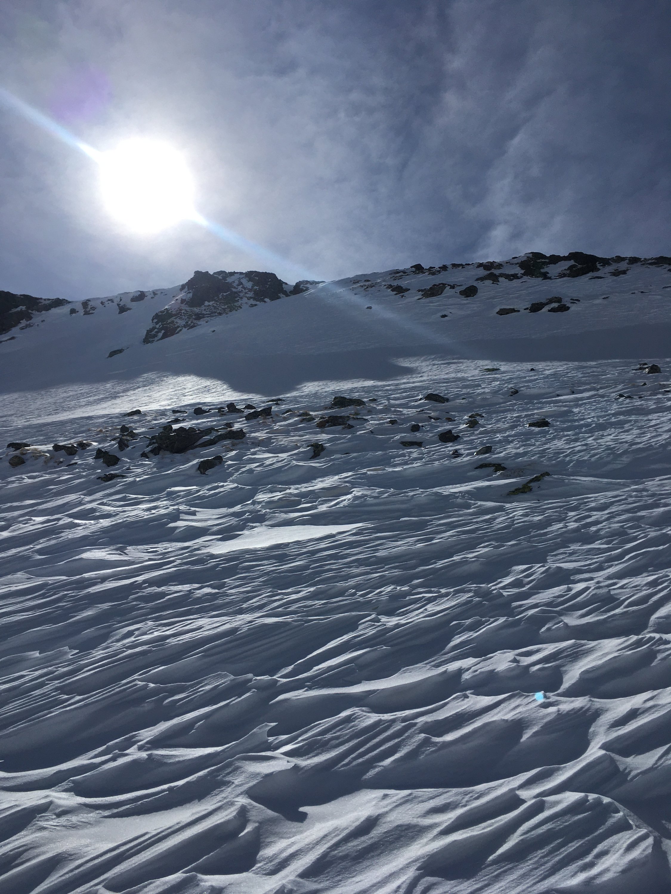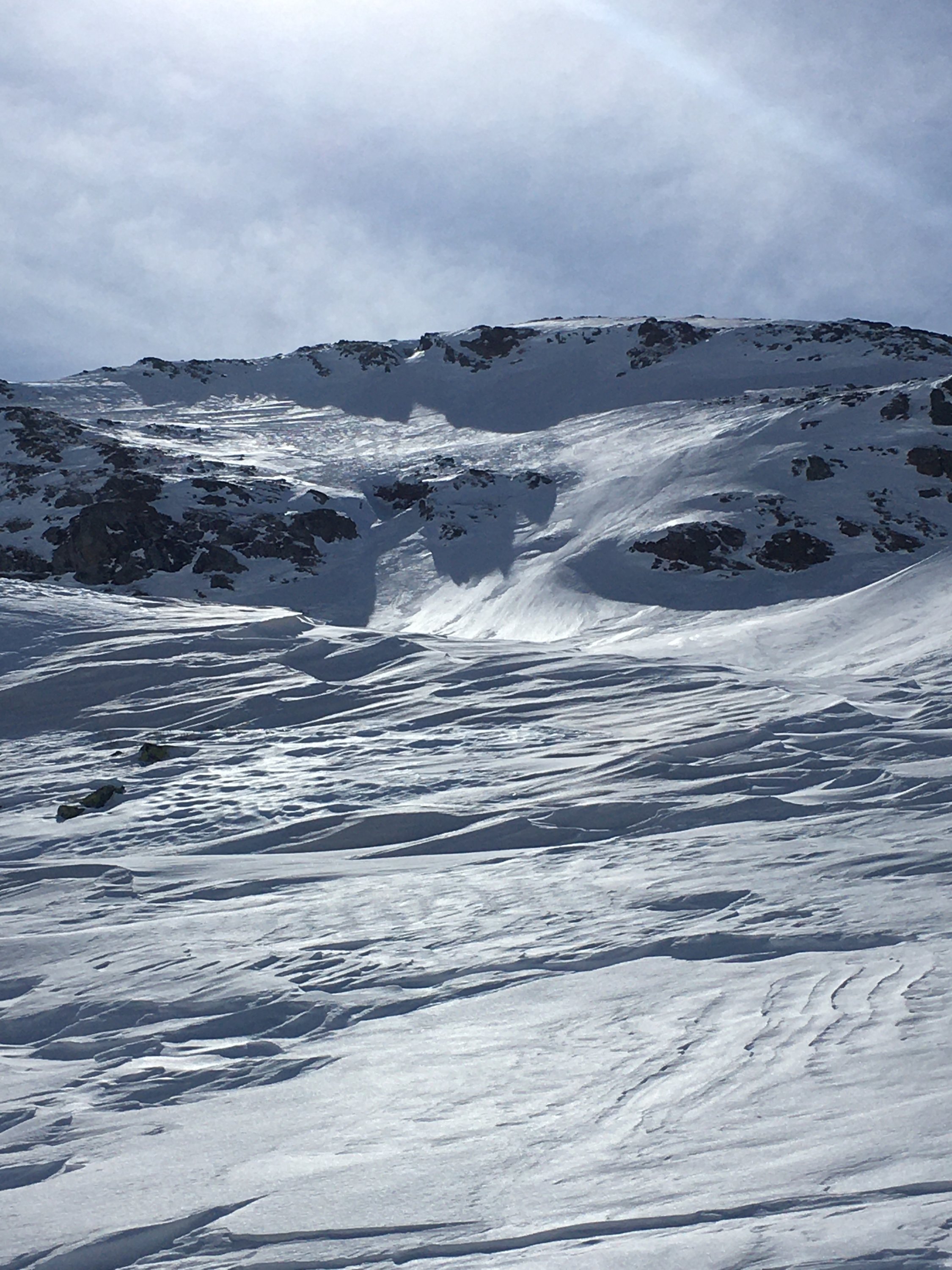 Start 7 Uhr Parkplatz Lej Pitschen, minus 10 Grad, windstill. Alles hart und im unteren Teil windgepresst, Aufstieg in der Westflanke und ab Höhe 2650 m in der Nordflanke und auf dem Gipfelgrat Skidepot. Bin dann zu Fuss bis zum ersten markanten Vorgipfel auf Höhe 2910. Den Punkt 2923 Vorn d‘Arlas habe ich mir wegen den Wächten geschenkt. Abfahrt im oberen Teil harter Firn mit wenig Pulverschnee. Ab Höhe 2600 ruppiger Firn vom Wind bearbeitet. Im unteren Teil auf dem Rücken hält sich der Fahrspass in Grenzen. Etwas Neuschnee ohne Wind wäre ideal.