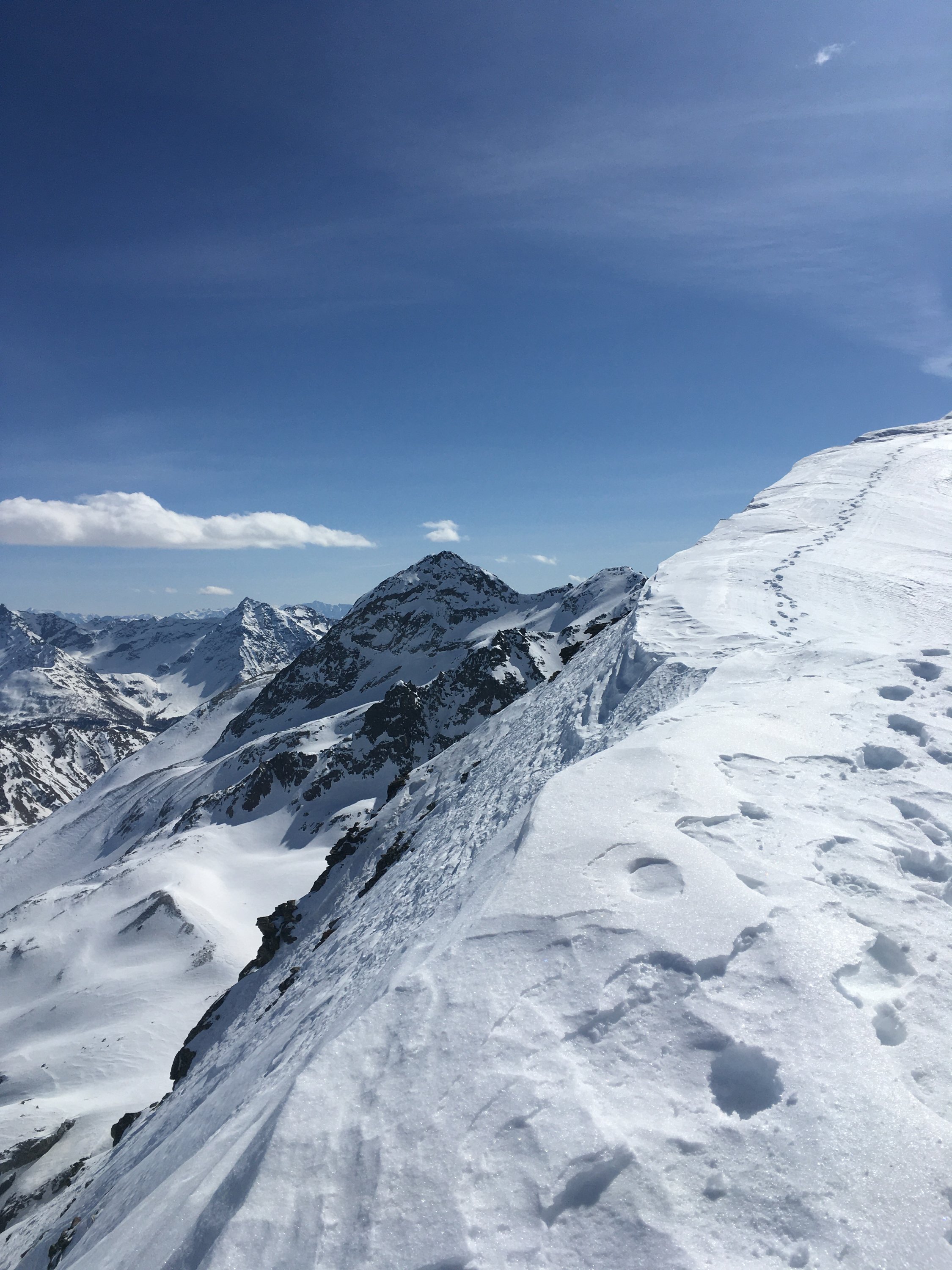 Bin heute das erste Mal auf dem Corn d‘Arlas gewesen. Sehr interessante Tour mit spektakulärer Aussicht Richtung Bernina, Piz d‘Arlas, Piz Cambrena, Sassal Mason und Richtung Norden und Osten. Bei idealen Pulverschneeverhältnissen tolle Abfahrtsmöglichkeiten. Empfehlenswert. Im oberen Teil steile Hänge!