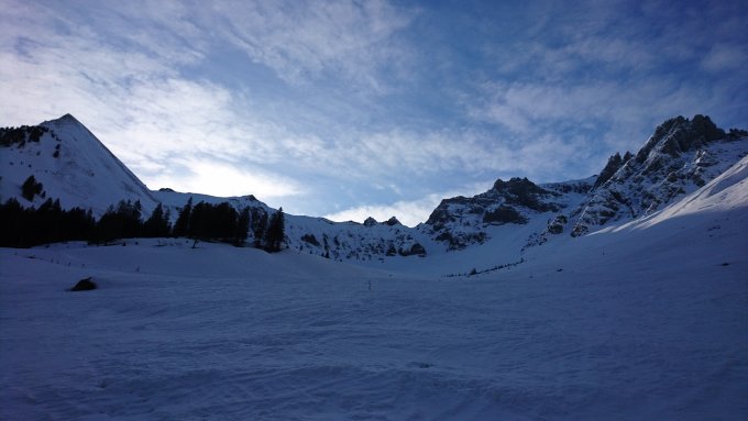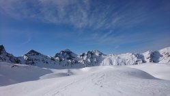 Schnee hat es, Triebschnee hat es auch, jedoch nicht viel konnten aber trotzdem im Gipfelhang bei der Abfahrt ein Minibrett lösen.