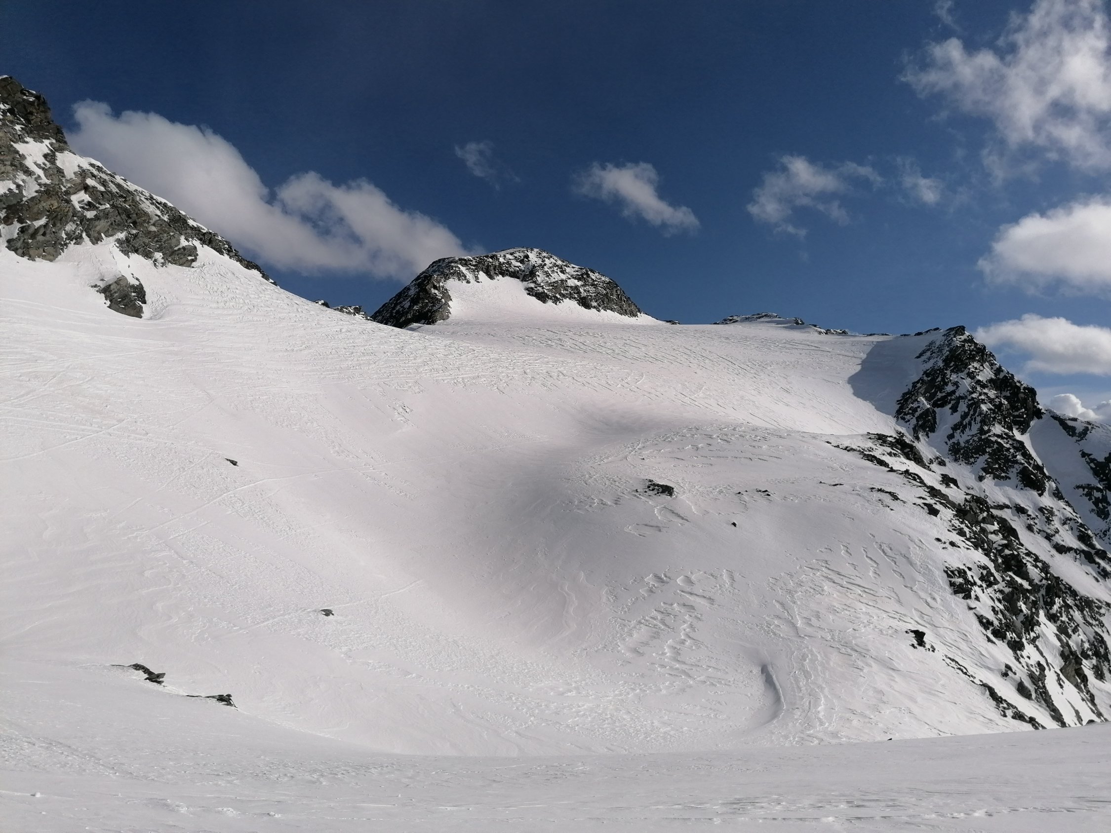 Später Start um 13:30 vom Skilift Furtschellas als Hütten Zustieg zur bewarteten Coaz Hütte. Schnee im Gebiet sehr Windgeperesst. Entgegen Prognose war es fast Windstill, nur die hohen Wolken flogen Schnell vorbei. Im Aufstieg hier und da etwas abrutschen auf der Aufstiegspur, Harscheisen empfehlenswert.