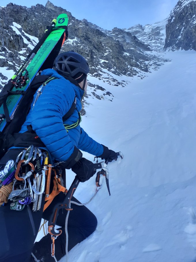 Unsere Tour haben wir noch mit einem Abstecher zum Gipfel und einer super Pulverabfahrt durch das NW-Couloir abgerundet. Sehr zu empfehlen, eine richtig runde Sache!