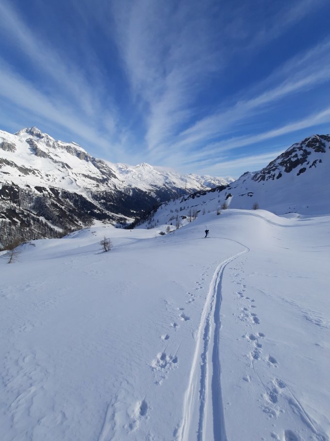 Ab Allaqua gut eingeschneit.Pulver in 2/3 Culi auf hart.Culiausstieg hart,ruppig.Abfahrt obn kurz Absteigen,dann Pulver auf hart,Restflänke super Pulfer,Abfahrt Wald bis Allaqua gut eingefahren.