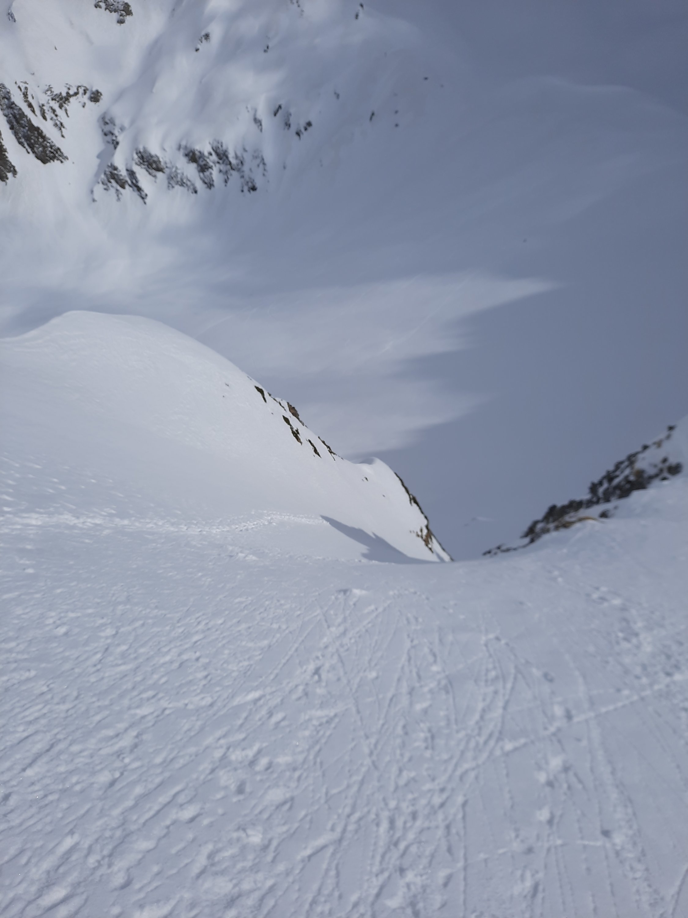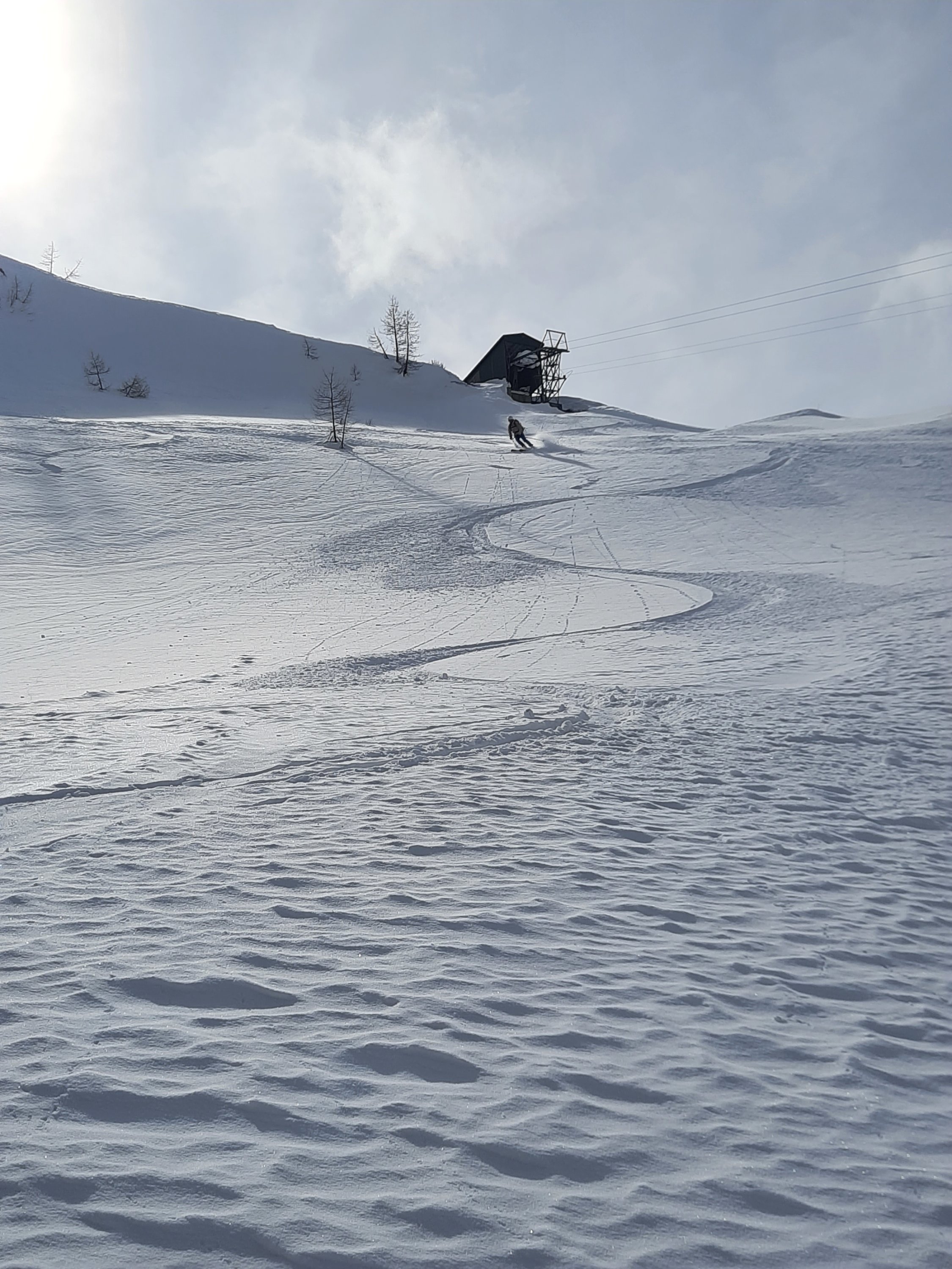 O Culi nach Poncione bereits recht sulzig schwer.Die 10 cm.Neuschnee aus Nacht etwas feucht aber sehr schön zu fahren bis runter