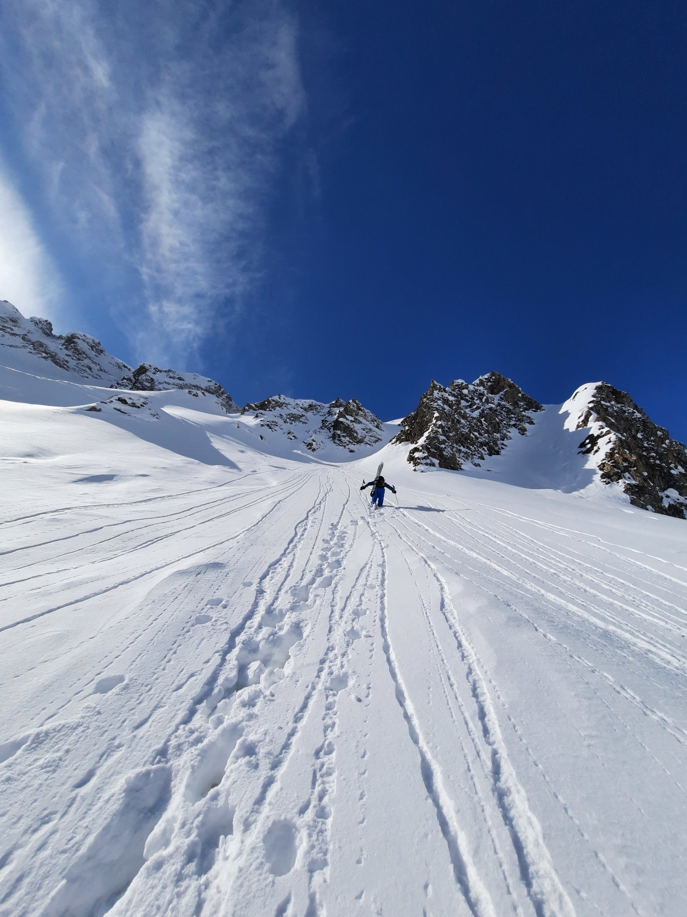 Pizzo Grandinagia (2774m): W und O Couloir ab Allaqua