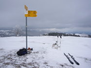 Durchgehend gute Schneedecke, an windgeschützten Stellen bis 40cm Presspulver. Skilifte in Prés-d'Orvin waren nicht in Betrieb, aber am Präparieren der Pisten...