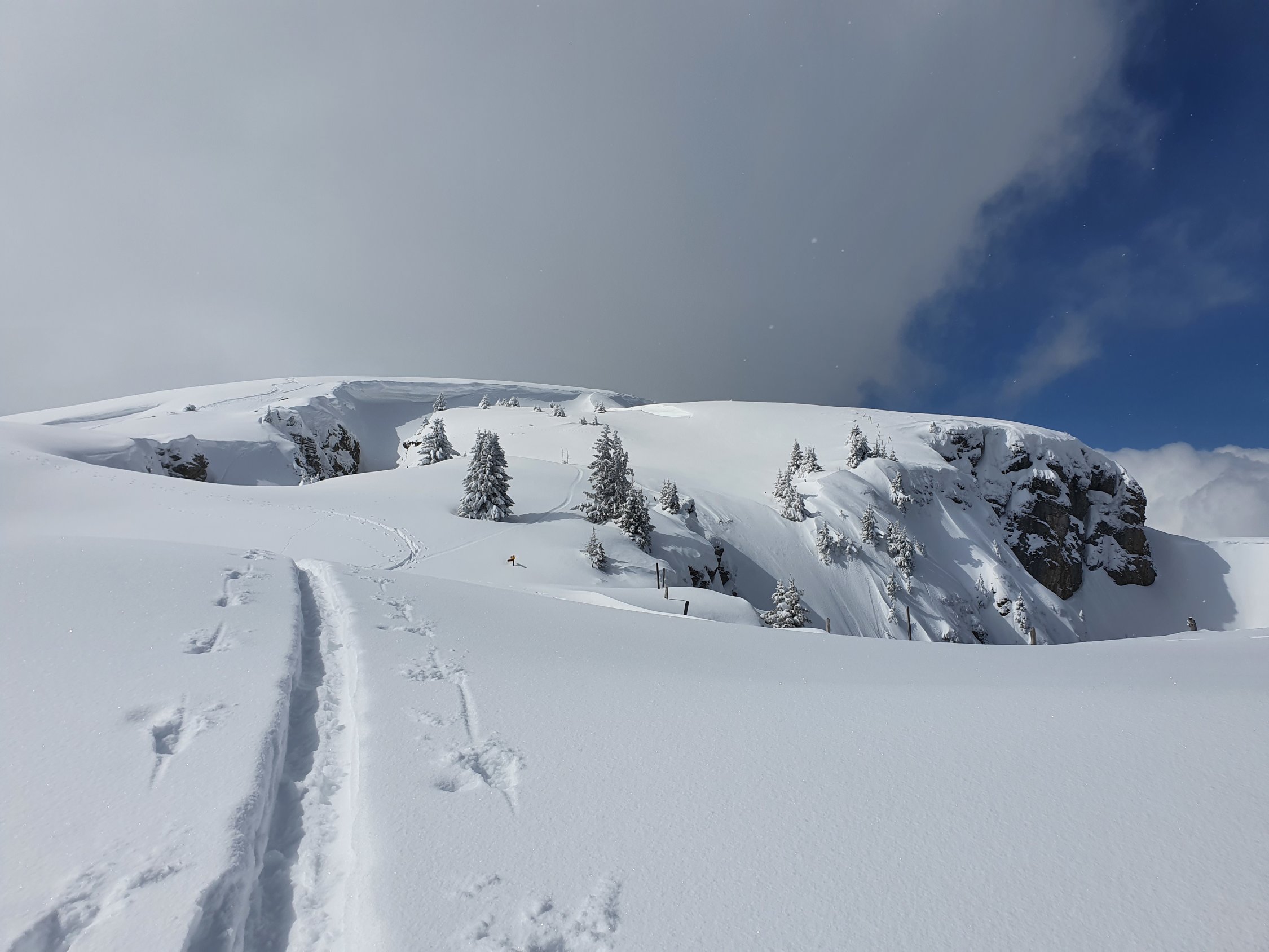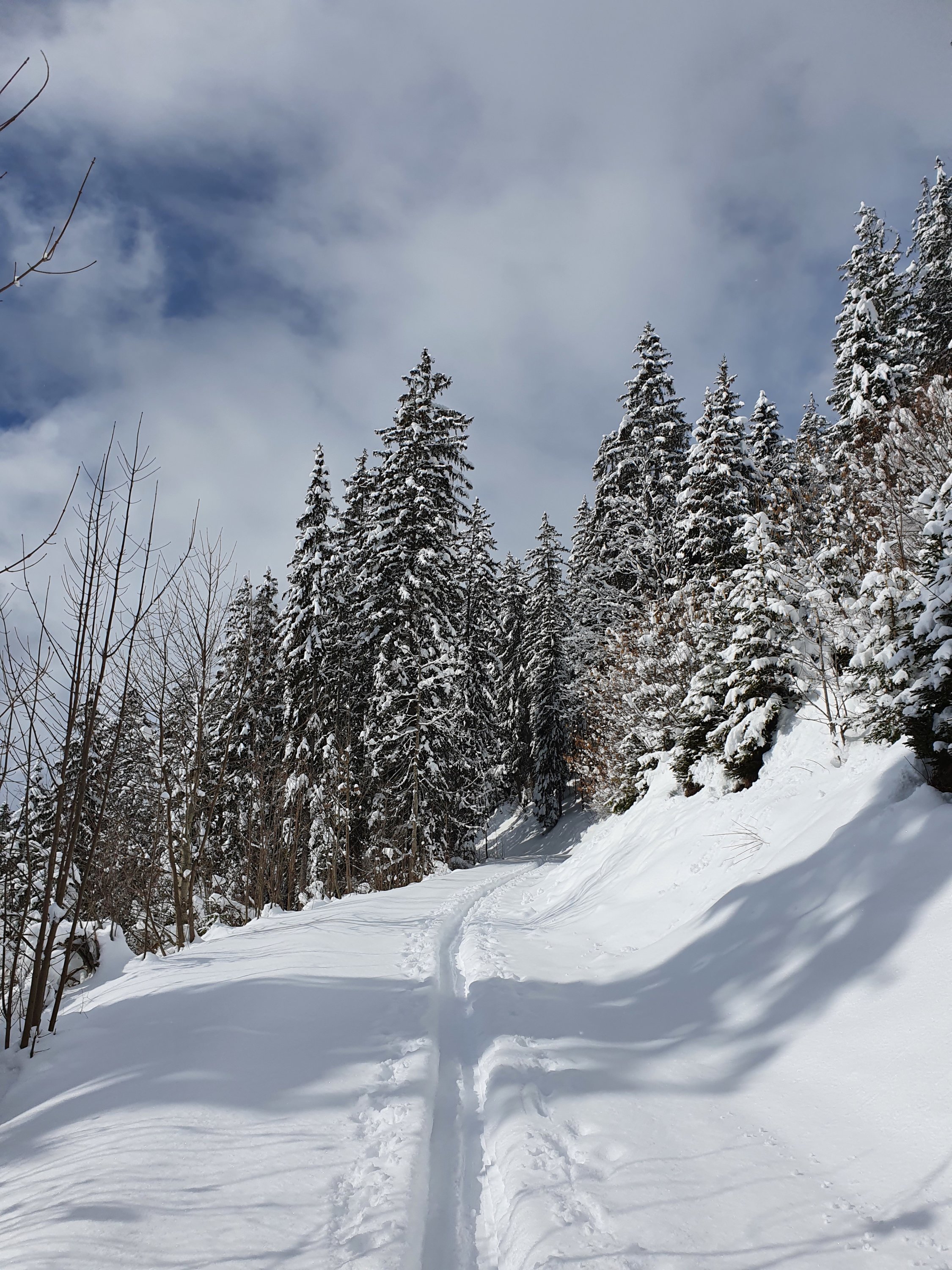Ab Zwischenflüeh 30 cm Schnee, Aufstieg über Matten zur Zeit wieder gut möglich.