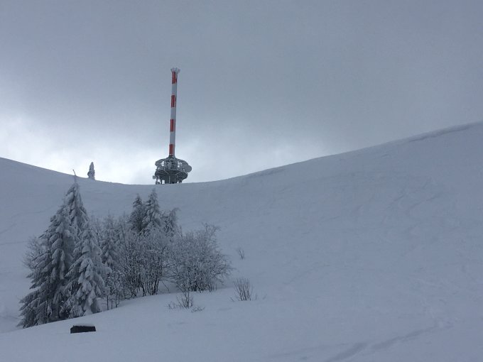 Fahl-Stübenwasen-Katzensteig-Wittenbach-Napf-Hüttenwasen-Zastler-Todtnauer-Fahl. Nordseitig bester Pulver bis ca 1000 (Altschnee drunter), dann leicht feucht, bzw wo nasse Wiesen pampig (kein Altschnee). Man kommt, so man möchte auf 850 runter. S und O wirds jeweils auf 1200 zäh, da fehlt Altschnee drunter. Napf-Hüttenwasen genug Schnee. Zastler Piste, Wächte nordseits schwach, s. Bild ! Zur Todtnauer runter schöner Presspulver. Hüttenweg geräumt, jedoch nicht gebügelt, mühsam.