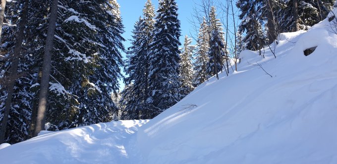 Der Waldweg von Weglosen zur Druesberghütte war heute nicht präpariert für die Schlittler, die Verhältnisse waren heute am Josefstag, Feiertag im Kanton Schwyz sehr gut, sie können nur wieder schlechter werden.