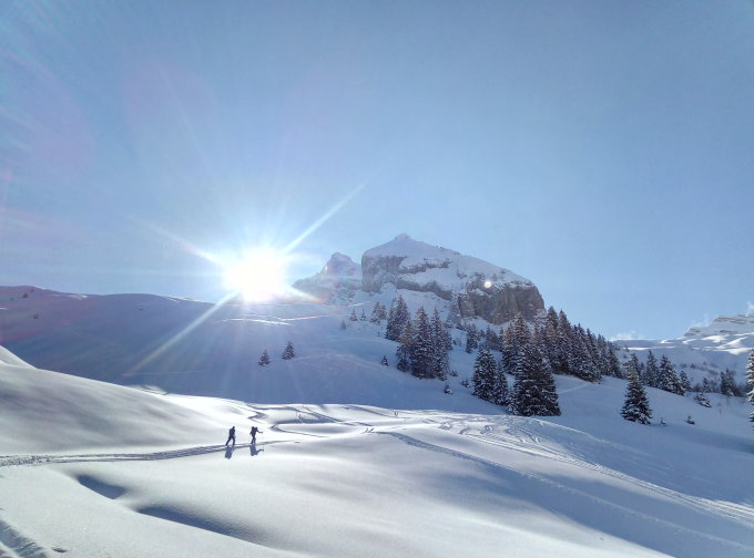 Unterwegs mit den Schneeschuhen bei besten Pulverschneeverhältnisse.