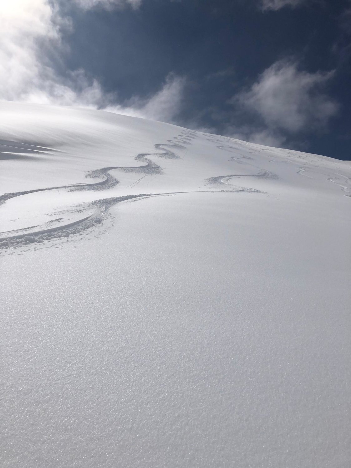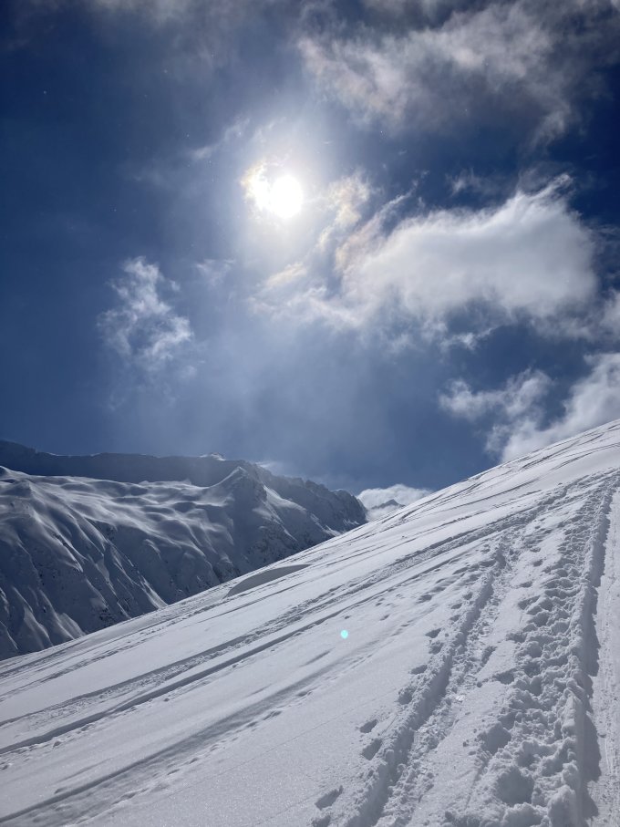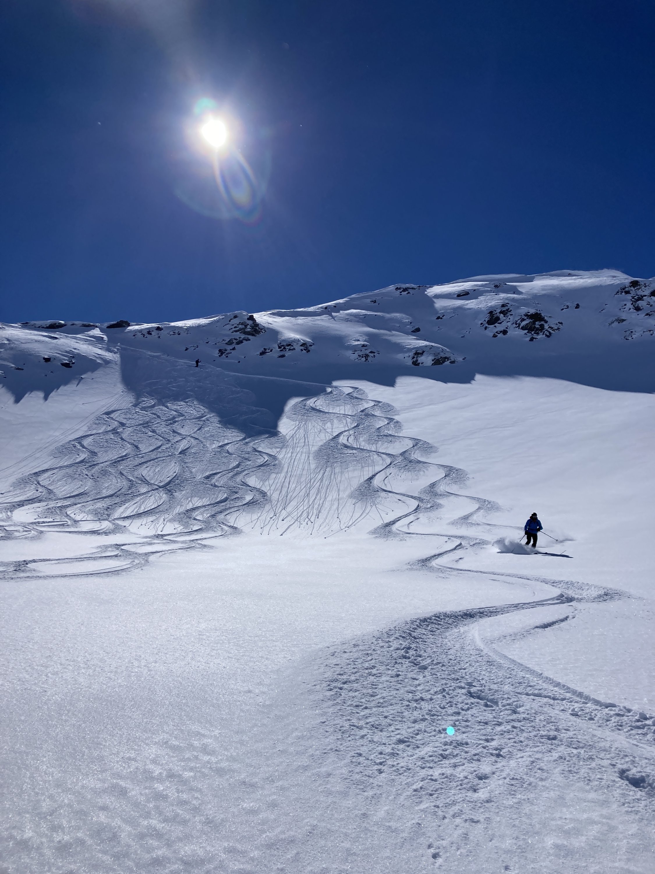 Top Pulverschneeverhältnisse auf der Abfahrt und Sonne pur, was will man mehr?