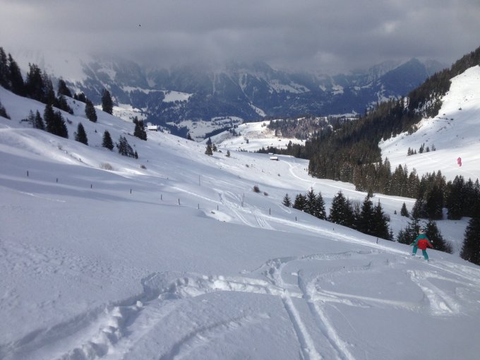 Temperatur beim Start -3 und viel Wind schon beim Skilift. Bise war ziemlich stark. Sehr windig auf dem Gipfel. Kalt! Abfahrt über den Grat gut. In den Windgeschützten Hängen sehr schöner Pulverschnee!