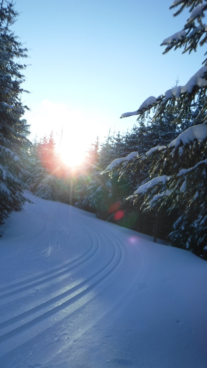 25 cm Neuschnee, der frisch präpariert war vom Loipenfahrzeug. Dank dem morgendlichen Spurenzieher.