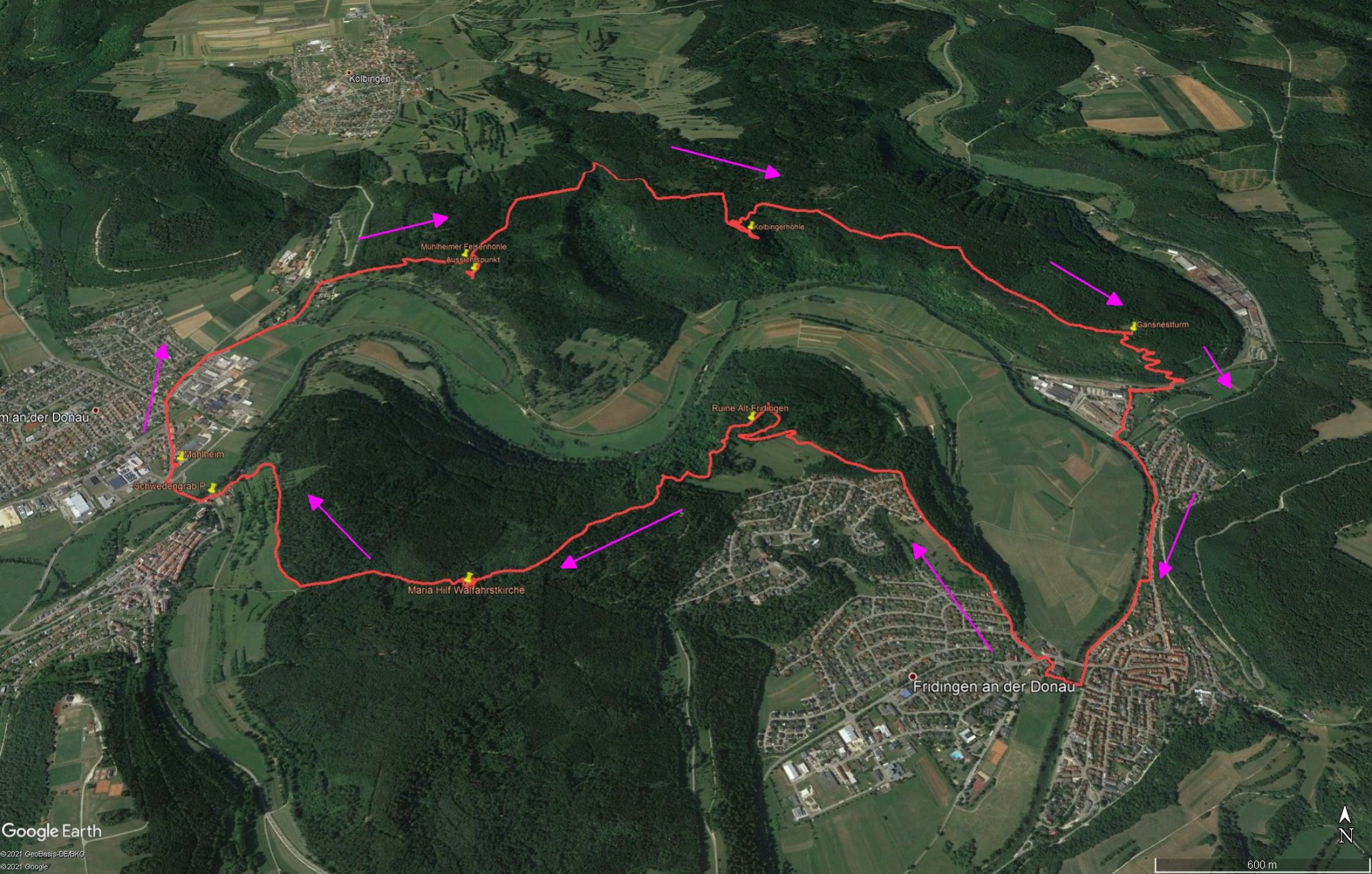 Mühlheim - Gansnest - Kolbinger Höhle - Alt Fridingen - Maria Hilf - Mühlheim Mühlheim (am besten Parkplatz am Schwedengrab) - Gansnest - Kolbinger Höhle - Ruine Alt Fridingen - Maria Hilf - Mühlheim