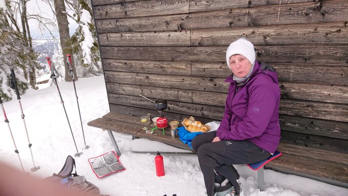 Sehr schöner Schnee im Aufstieg wie auf der Abfahrt. Wieso muss ich auf den Hauptgipfel wenn das Hotel geschlossen ist. Auf La Cornette im Windschatten ein herrliches Fondue genossen.