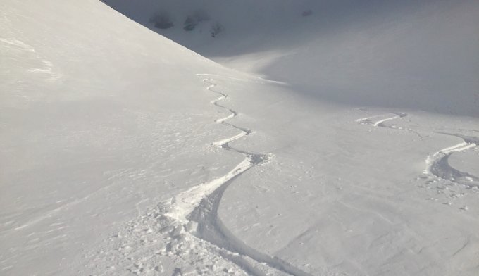 Am späteren Nachmittag noch auf das Albristhorn. Der Nebel hat sich aufgelöst und es wurde eine Traumhaft schöne Tour mit Top Verhälnissen. Aufstiegsspur sehr gut gelegt. Im Biregrabe hat es keine Lawinenblöcke wie sonst oft. Der Übergang auf den Grat ist gut gespurt und einfach mit den Skier zu begehen. Es braucht keine Harscheisen. Nach dem Grat bis zum Gipfel Presspulver, aber angenehem für Aufstieg und Abfahrt. Für die weitere Abfahrt hat es traumhaft schönen Pulverschnee. Zwischendurch etwas Deckel, der aber durchgedrückt werden konnte. Unterwegs habe ich einen Handschuh (BlackDiamond) gefunden. Wer einen vermisst, kann sich gerne bei mir melden.