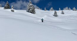 Am Morgen noch guter Pulverschnee, gegen Mittag nur noch im Schatten durch starke Sonneneinstrahlung.