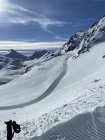 Gletscher abgeblasen, quasi keine Spalten sichtbar. Kräftiger Wind mit böen bis 60kmh. Direkt unter dem