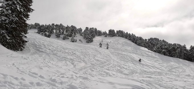 Tolle Verhältnisse von unten bis oben, enge Steilstufe zerfahren aber nicht vereist und gut machbar. Noch sehr viel nicht zerfahrenen Pulver im unteren Schattenberg Hang für eine richtig tolle Abfahrt.