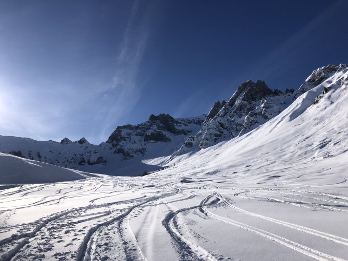 früh starten lohnt sich, wer Pulver will, muss die Nordhänge machen.