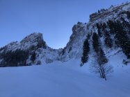 Nach der Schlucht Gegensteigung der Wand entlang (etwa 3/4h). Die Schlussabfahrt zum Wägitalersee ist aktuell noch möglich, der Schnee hier aber miserabel.