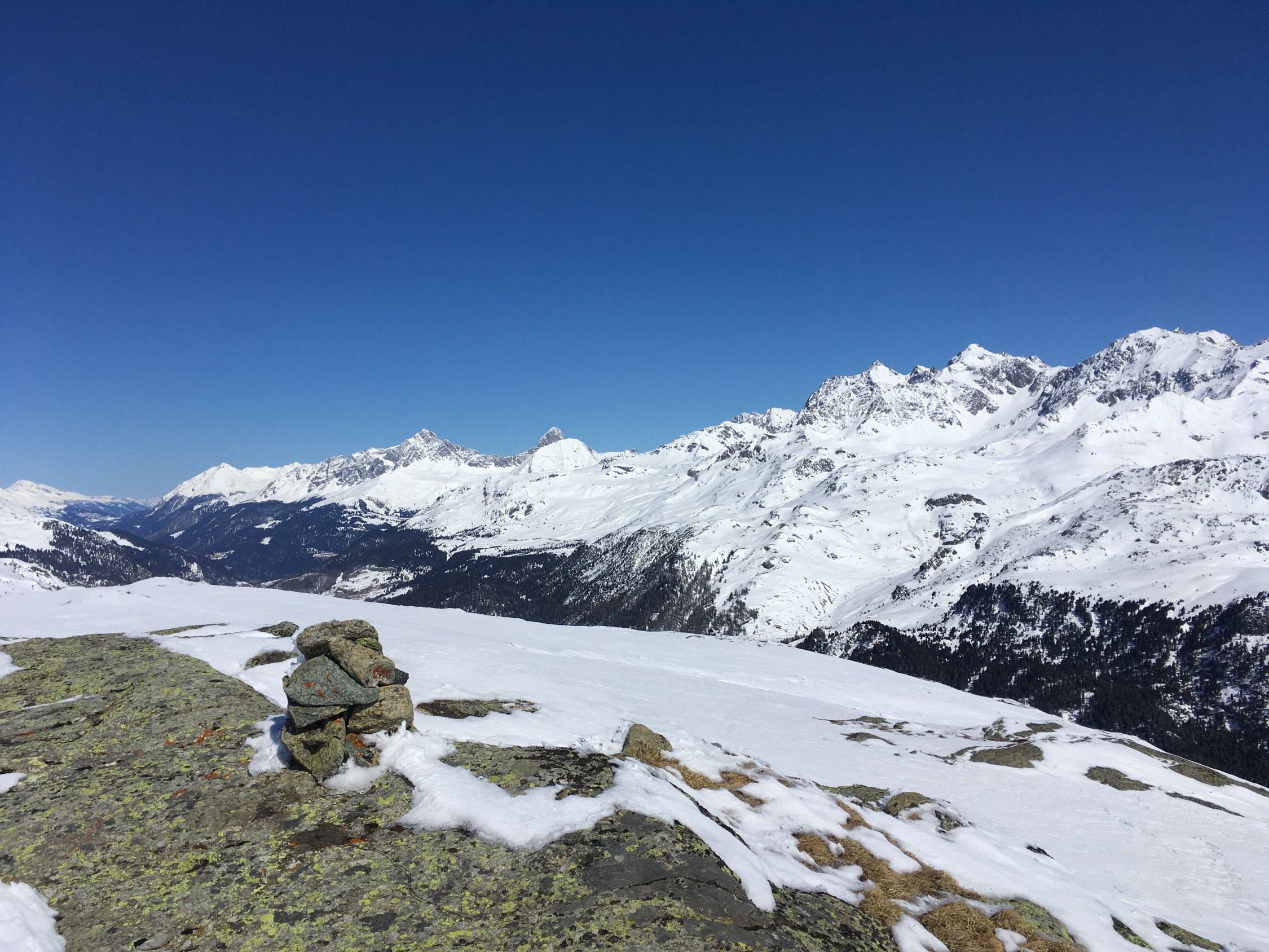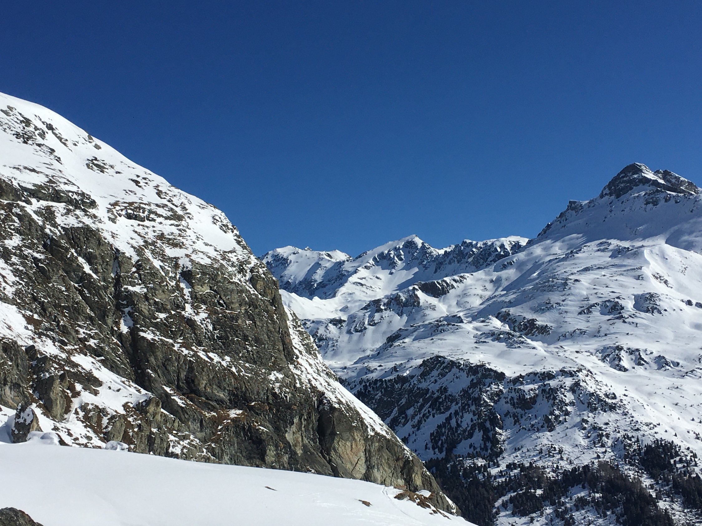 Start grosser Parkplatz Bivio 8 Uhr, minus 5 Grad, windstill. Gute Spur(en) vorhanden. Angenehmer Aufstieg an der Sonne bis zum flachen Gipfel. Sehr schöne Aussicht in alle Richtungen. Abfahrt auf der Nordflanke nach Stalveder zur Julierstrasse. Perfekte Verhältnisse mit tollem Pulverschnee. Es hat meistens je nach Route noch Platz für eigene Spuren, am besten immer etwas rechts halten und vor Stalveder Richtung Osten zwischen den Bäumen zur Julierstrasse. Zu Fuss etwa 30 Minuten zum Parkplatz in Bivio. Hatte noch nie so tolle Verhältnisse in der Abfahrt nach Stalveder!