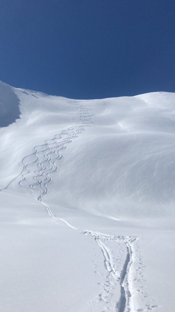 Aufstieg über Piste zu p. 2460 -Abfahrt wäng-Aufstieg pischaboden zu p.2708 weiter über nw grat an Gipfel-Abfahrt verborgen pischa