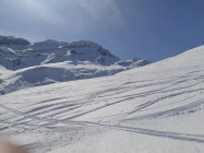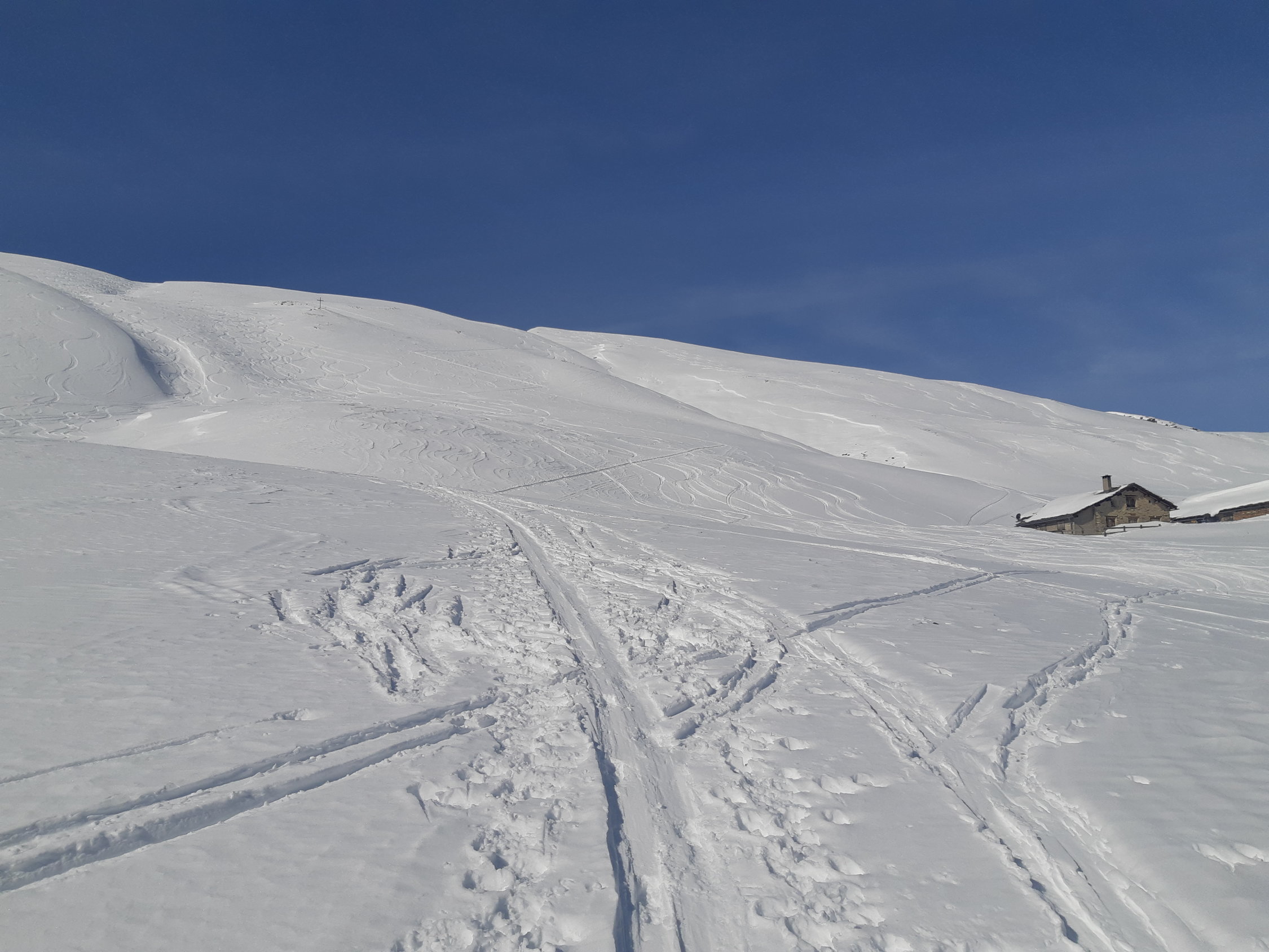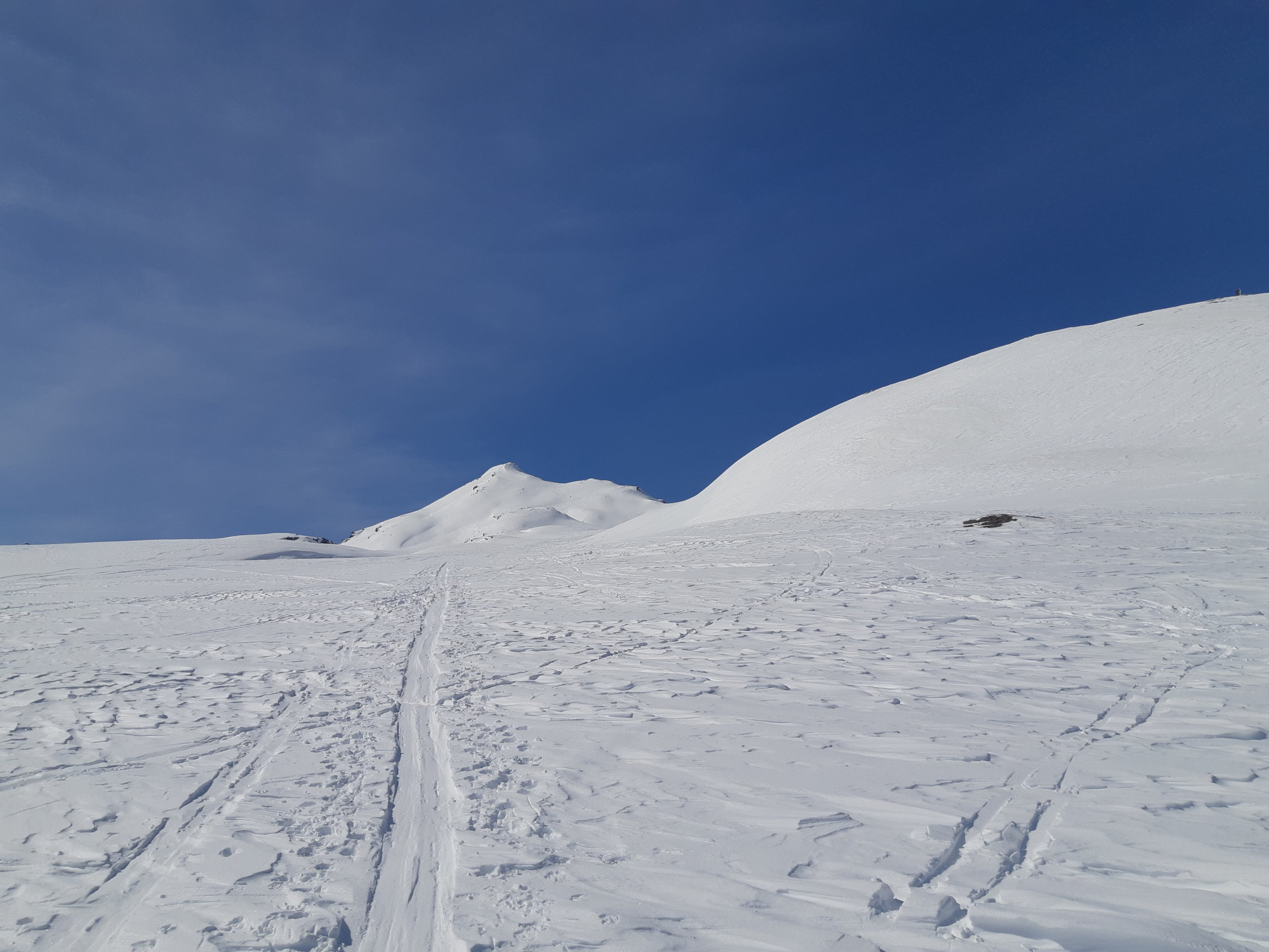 Gipfelhang etwas abgeblasen...ansonsten bis zur Waldgrenze wunderbar zu fahren..dann auf dem Weg weiter