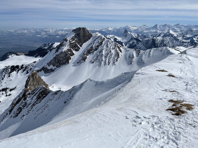 Viel Schnee ab Gantrischhütte. Spur beim Morgetenpass sehr angenehm. Abfahrt: Gipfelhang Bürglen Süd: Ansätze von Sulz und Bruchharst. SE-Hang Richtung Obriste Morgete: Ansätze von Sulz und Nassschnee. Schibespitz Nordwesthang: Presspulver mit wenigen Ansätzen von einem Deckel. Chummli - Gantrischseeli: Schwerer Presspulver, schaffig. Seeli - untere Gantrischhütte: Bremsschnee