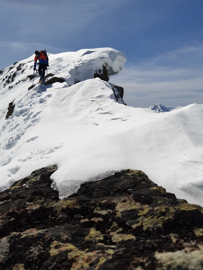 Alp Güglia zum Wintergipfel und zu Fuss zum Hauptgipfel Gute Verhältnisse zum Wintergipfel und jetzt gespuhrt zum Hauptgipfel zum Piz Lagrev ( Steigeisen).