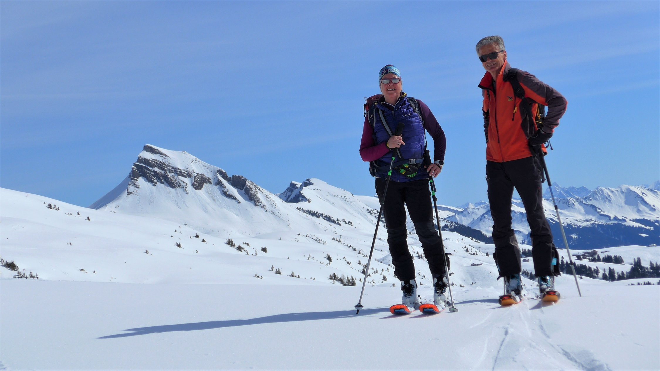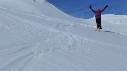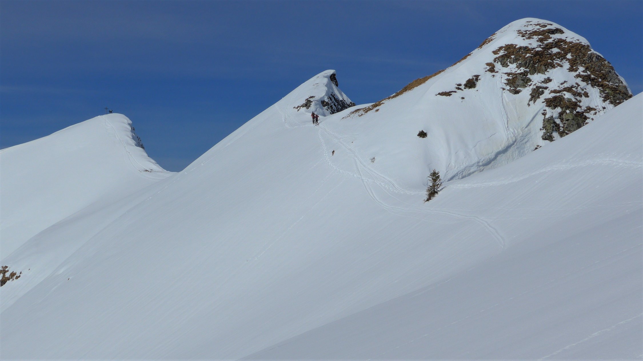 Also, zackig retour ins Sünser Joch und von dort über den Nordgrat auf das Portlahorn. Herrliche Fernsicht, tolle Abfahrt, erst nordseitig (gerade noch Pulver) und dann super Piste bis hinab nach Damüls.