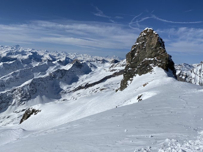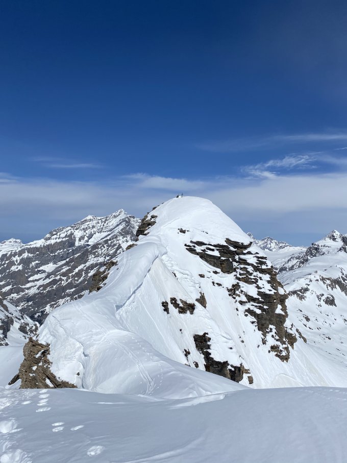 Bei der Abfahrt morgens viele Leute im Aufstieg gesehen. Auf dem Rücken und am Berg dann nur noch ein Walliser Duo getroffen. Der Rest ist wohl über den Rücken rauf und runter geflitzt oder beim Ferdenpass abgebogen.