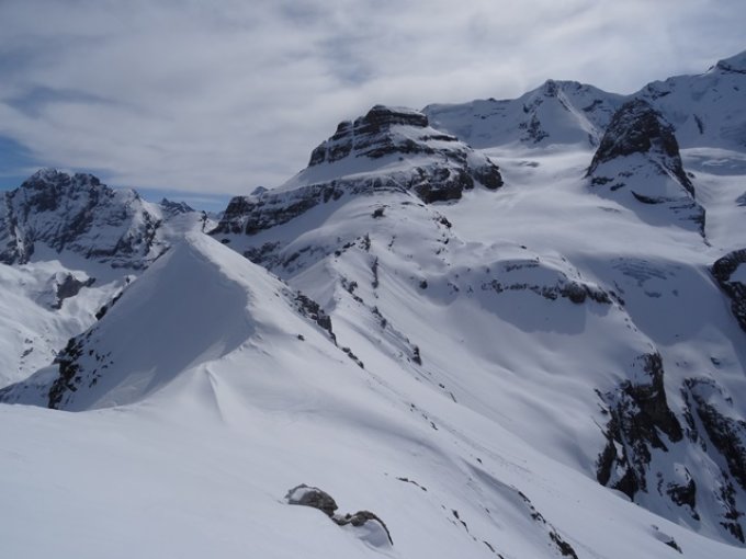 Lücke zwischen 2781m und 2785m hinunter und die Wärmutflue in einem S-Bogen umfahren und weiter unten in die breiten Hohtürlihänge eingebogen.